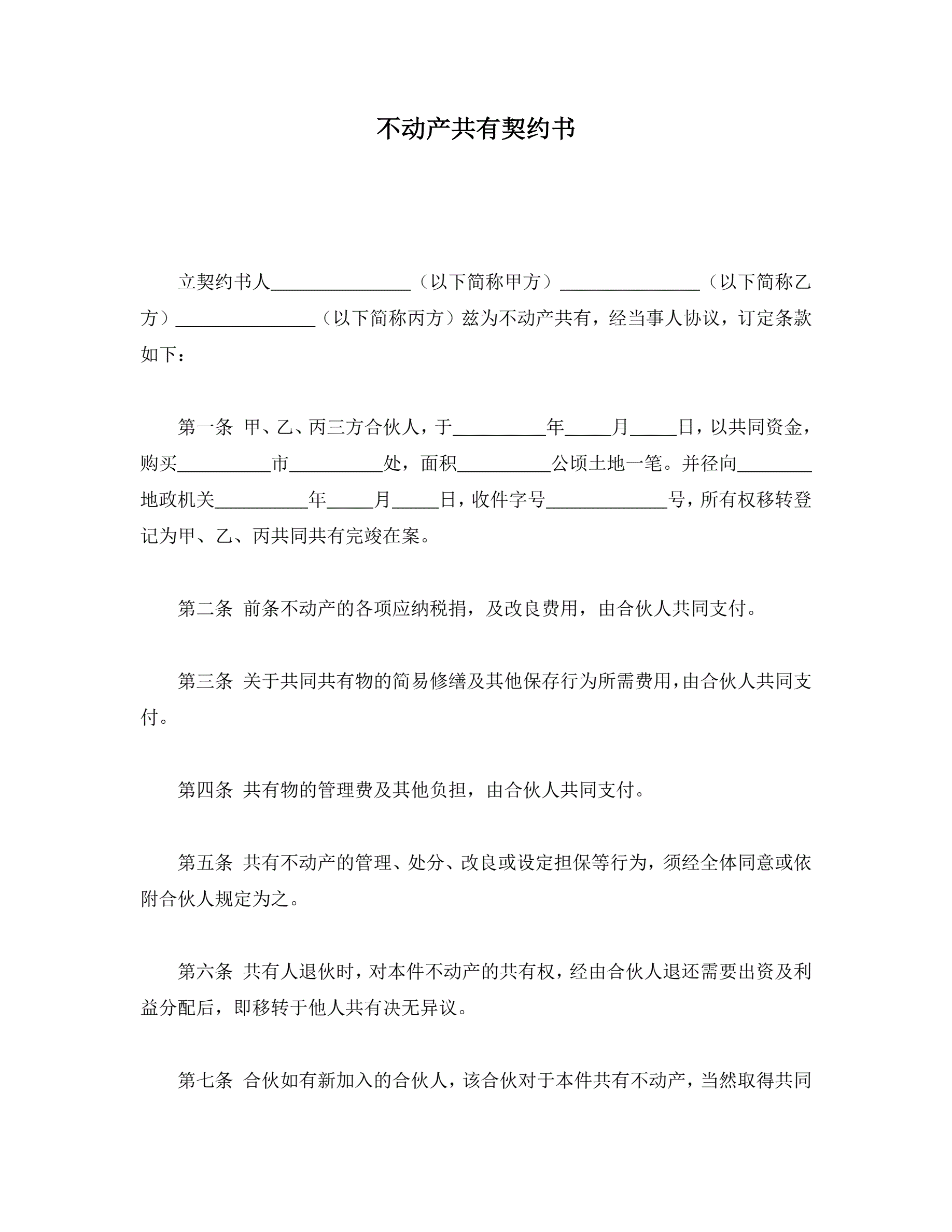 >不动产共有契约书