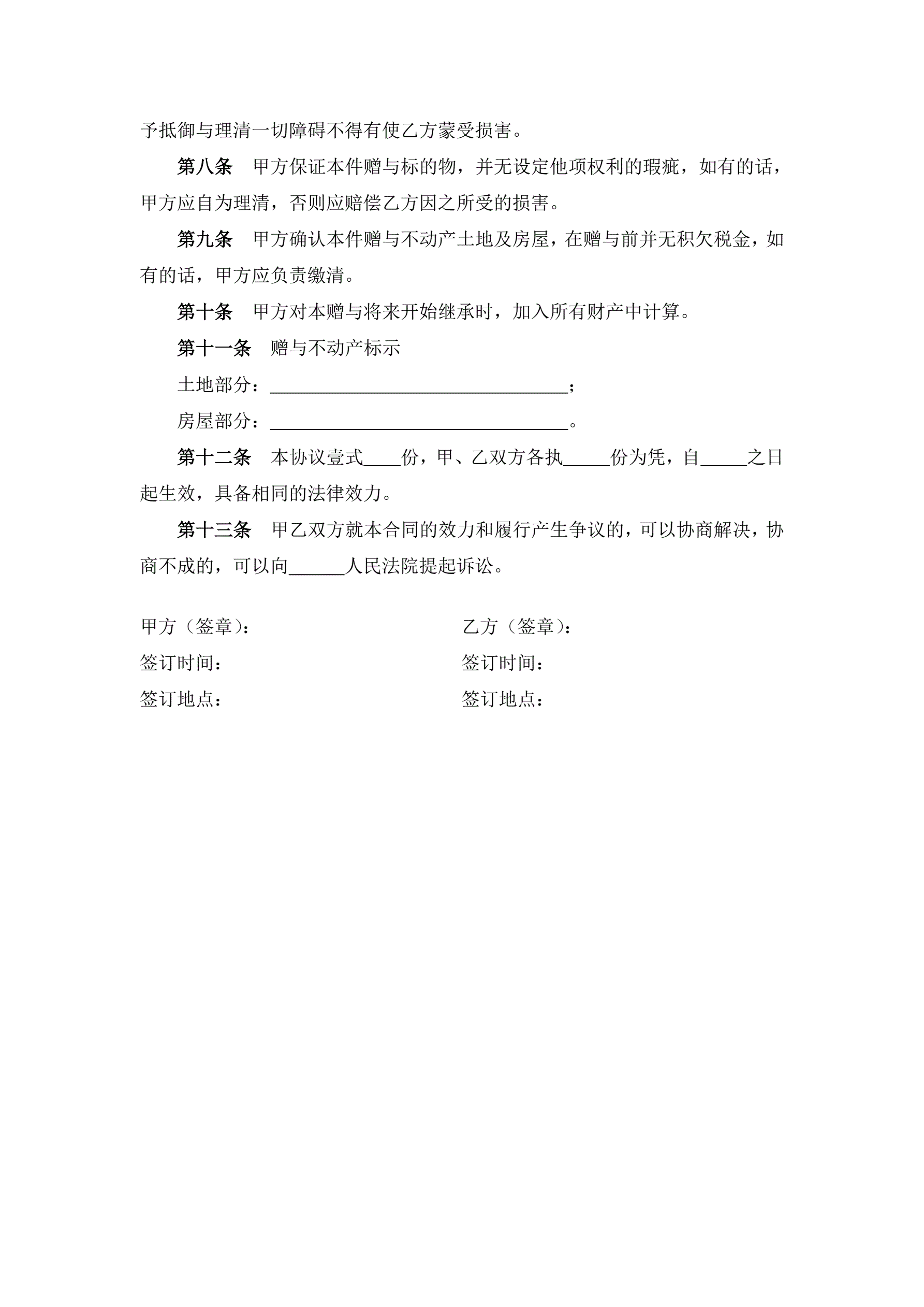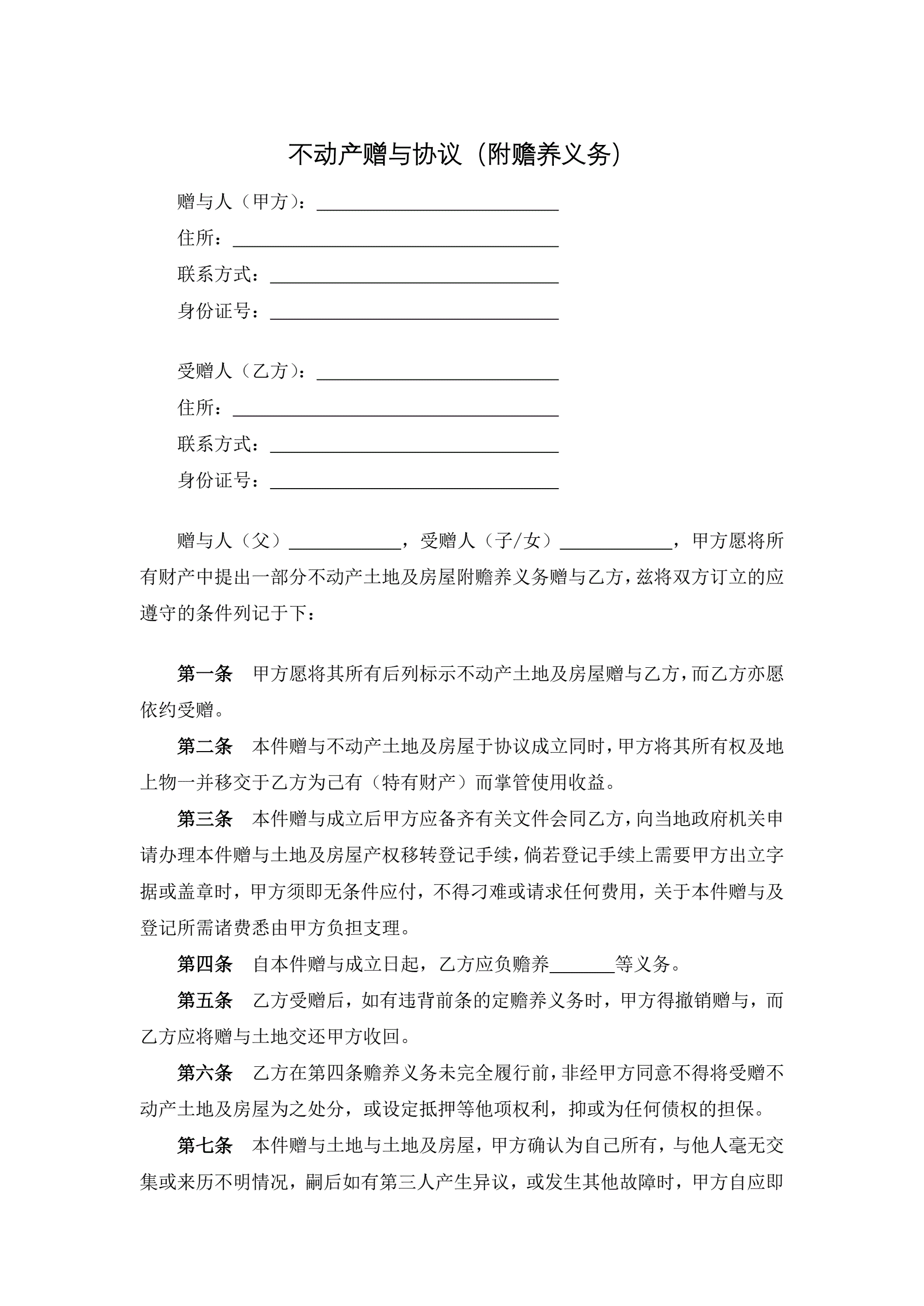>不动产赠与协议(附赡养义务)