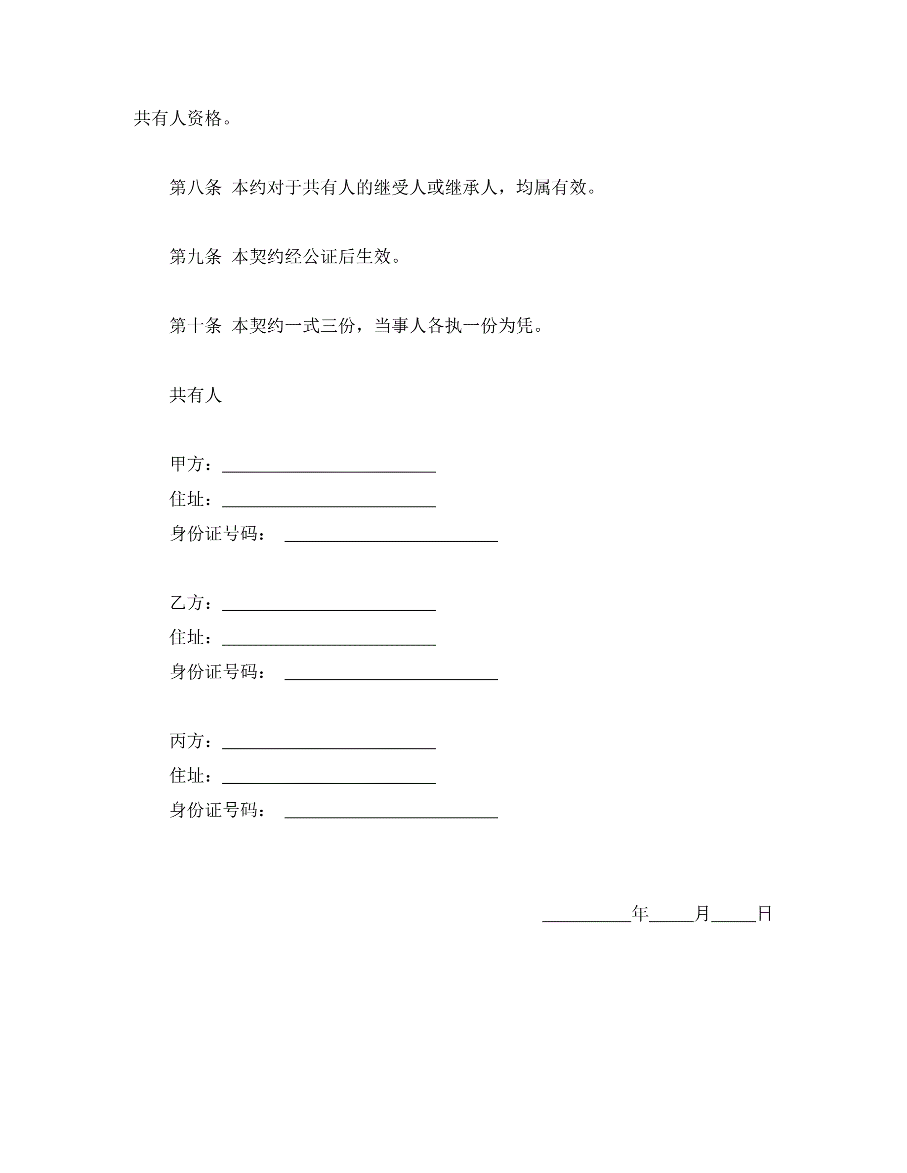 >不动产共有契约书