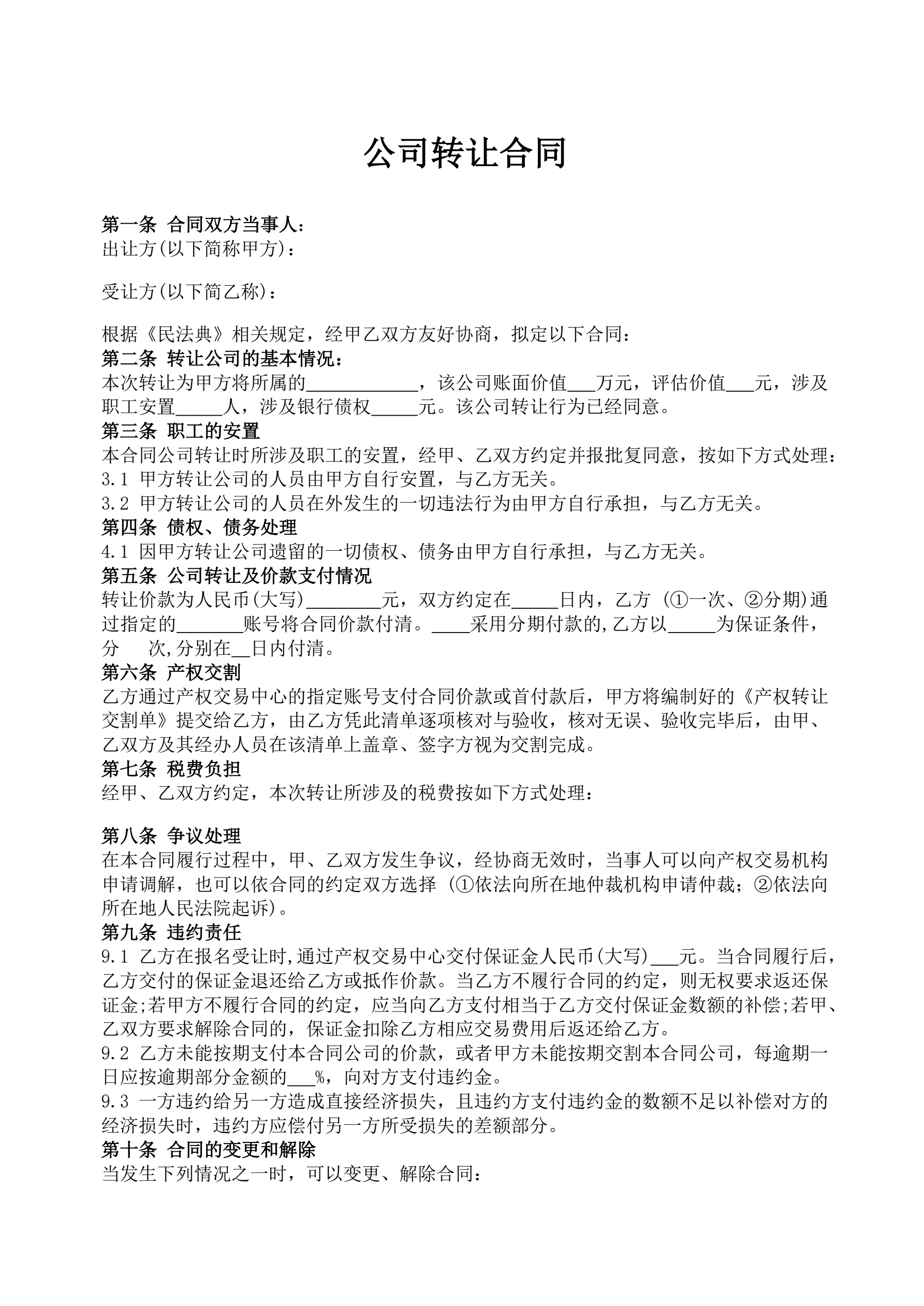 公司转让合同
