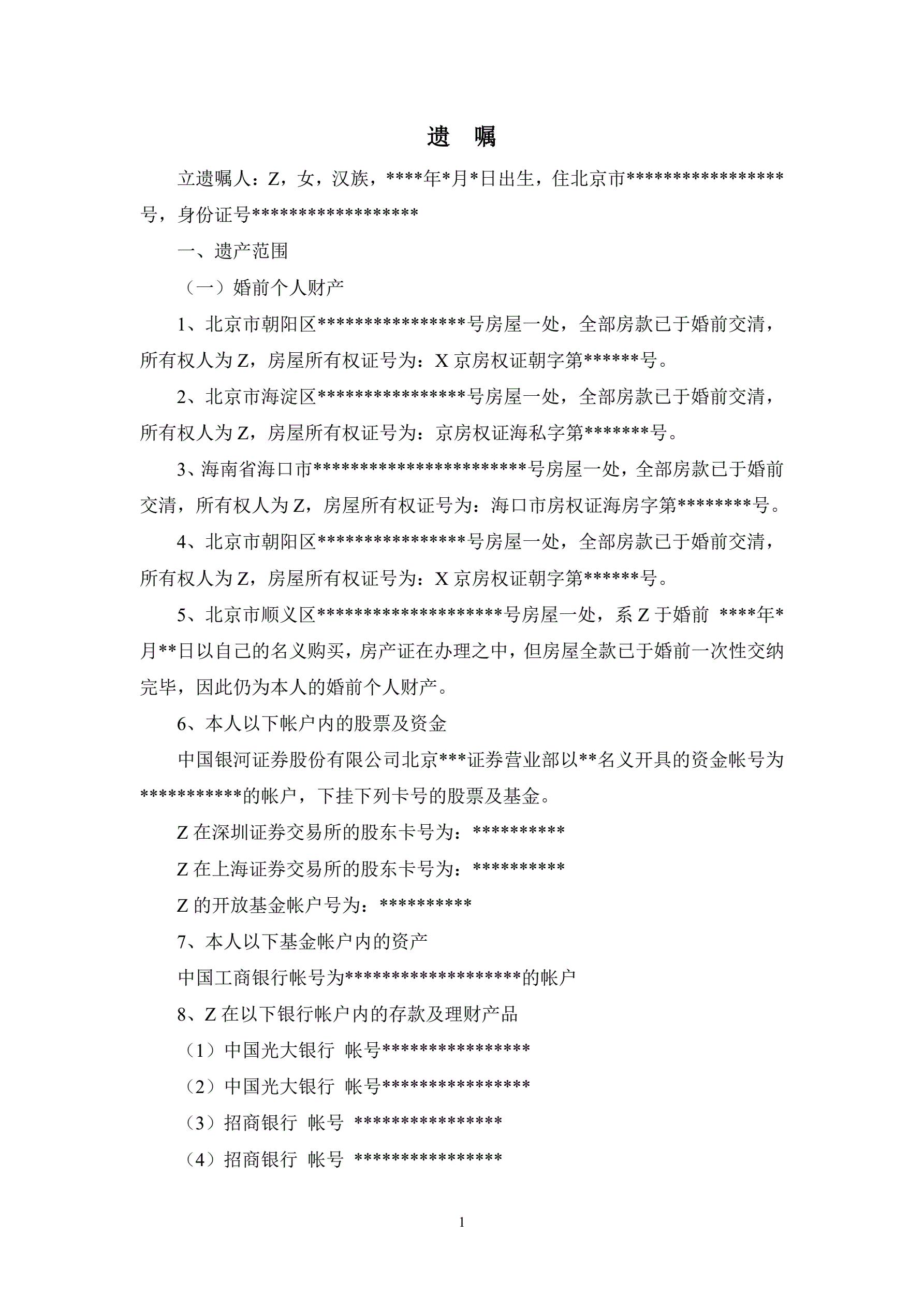 >遗嘱继承24份遗嘱