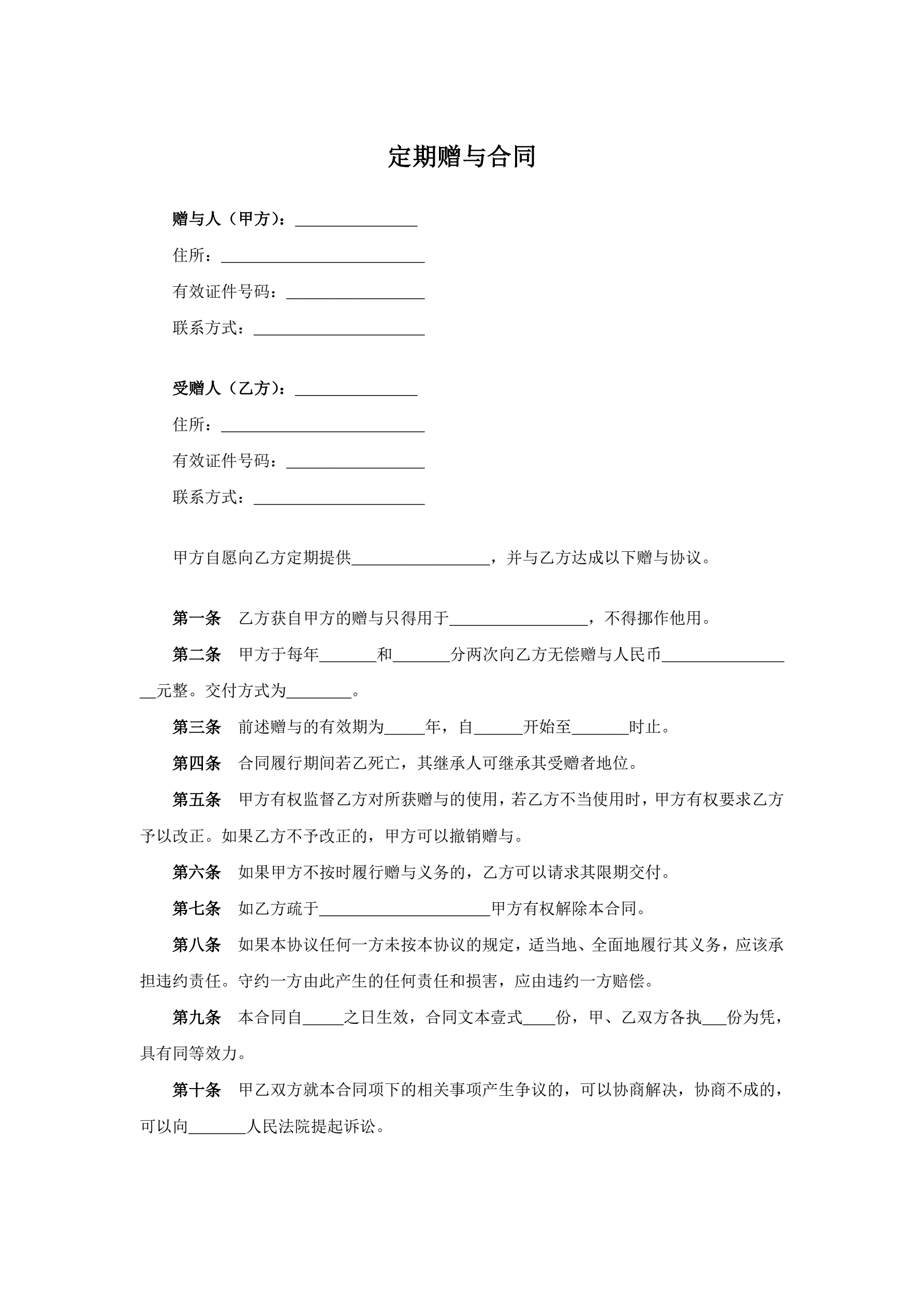 >定期赠与合同