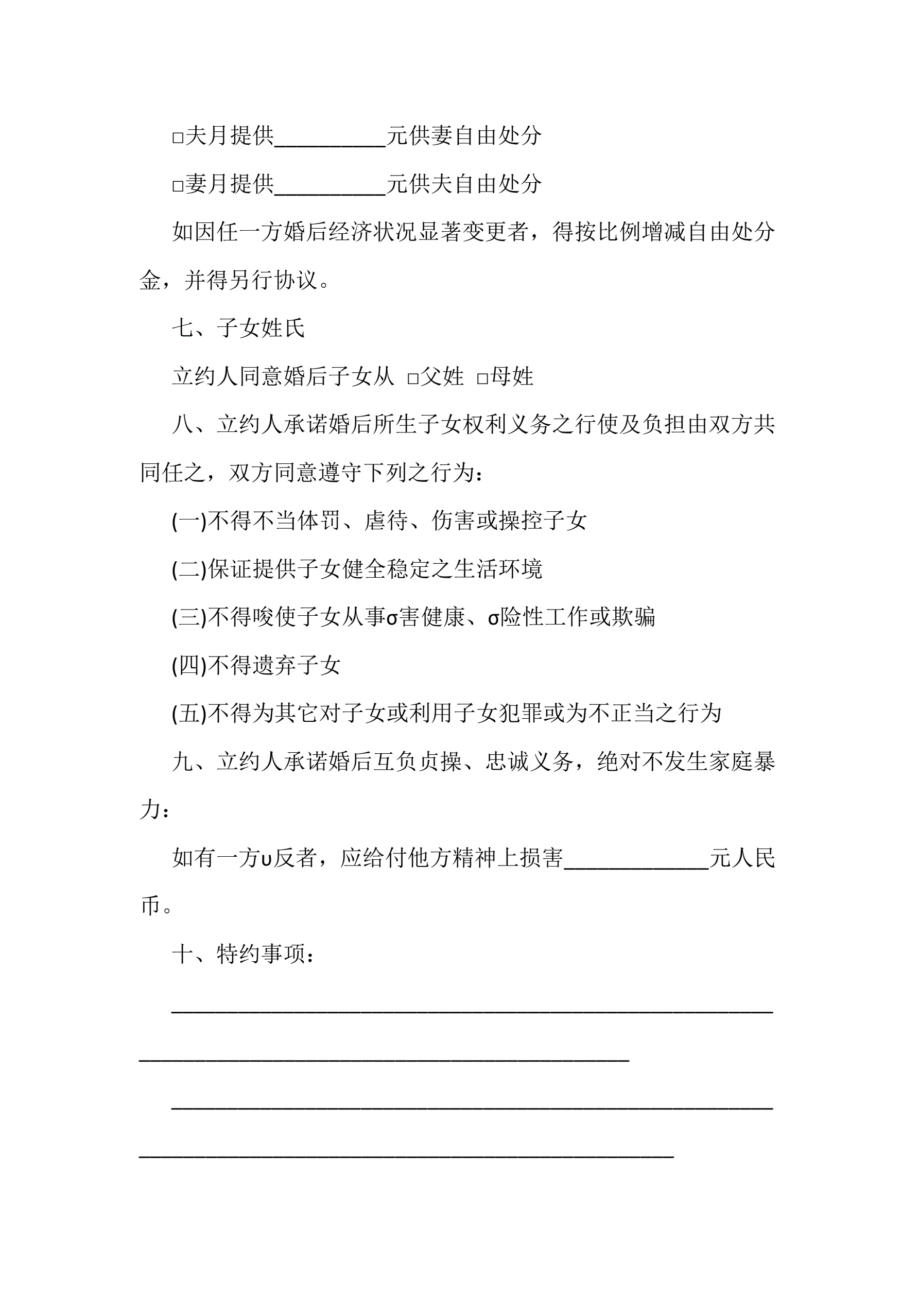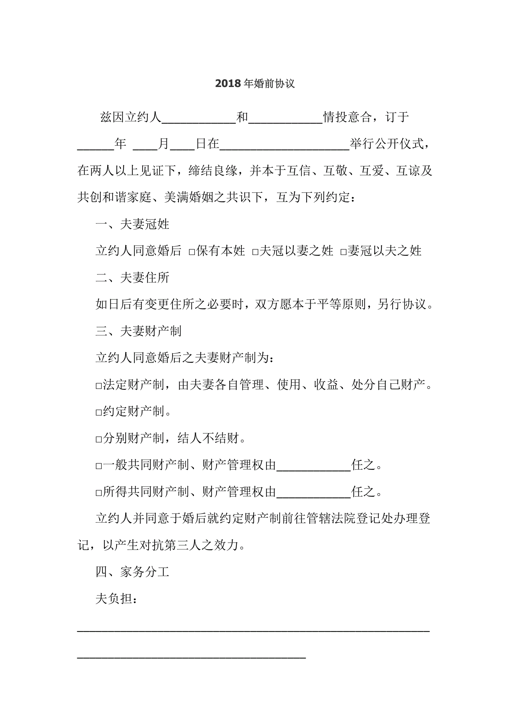 2018年婚前协议
