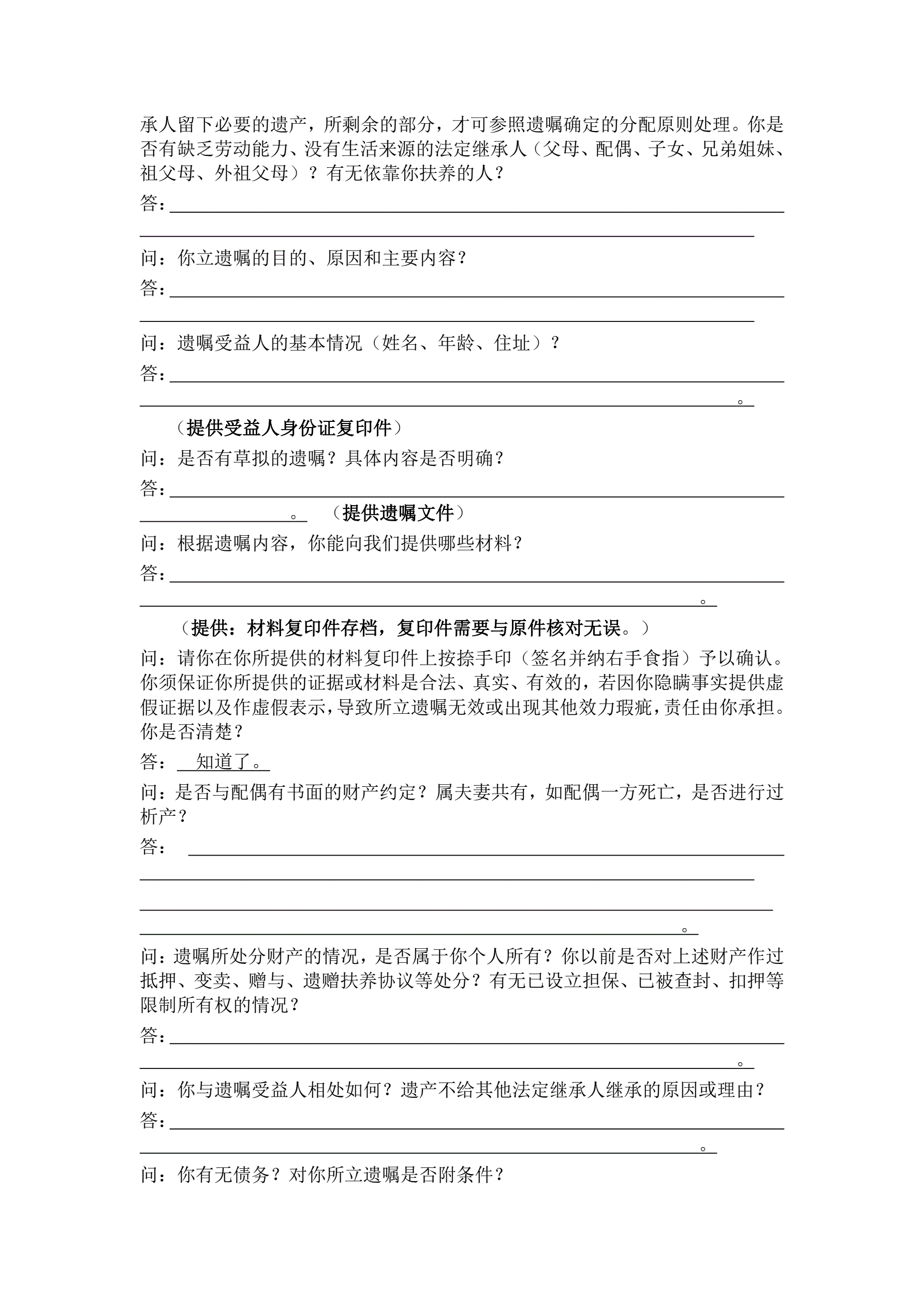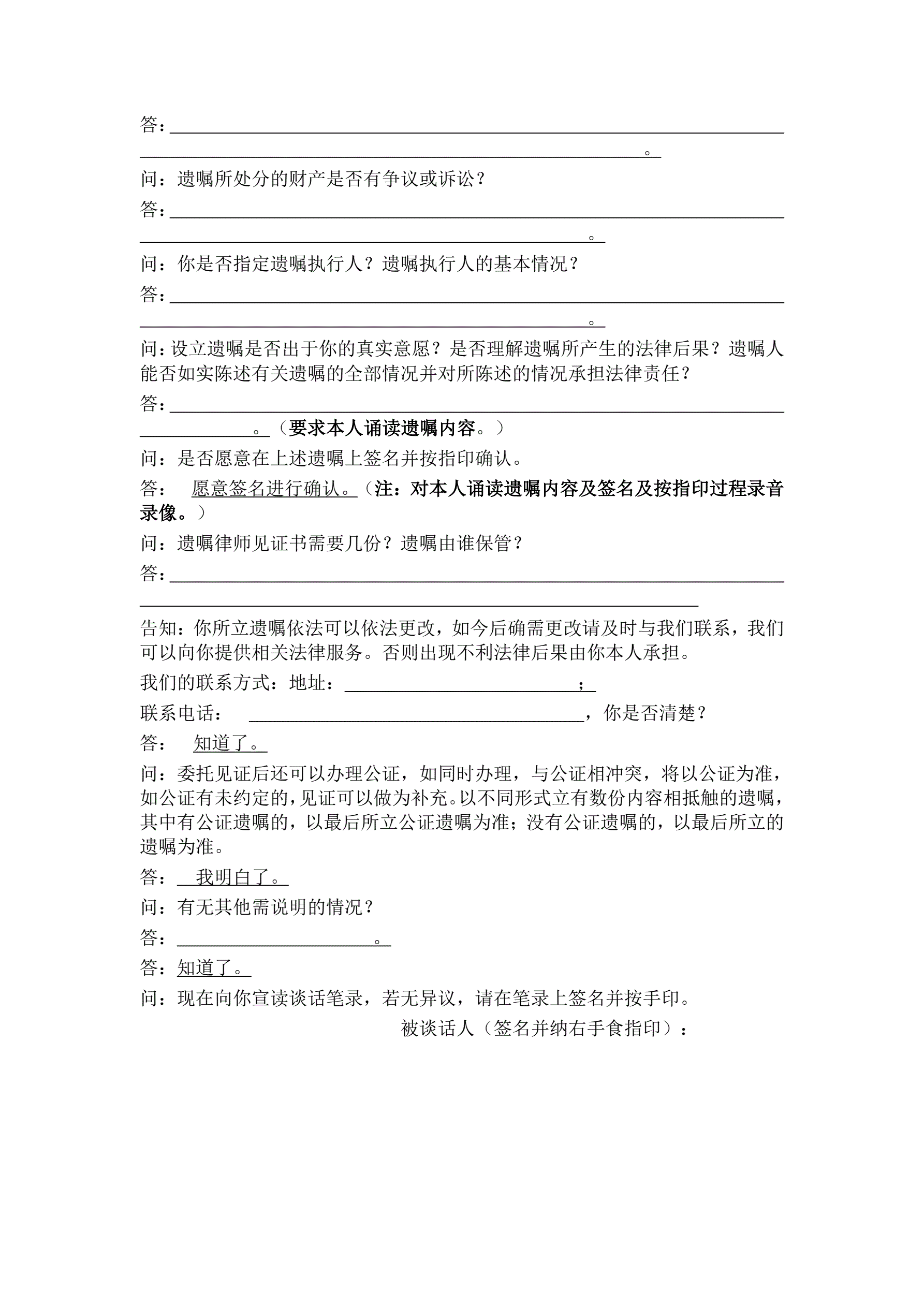 遗嘱见证律师谈话笔录