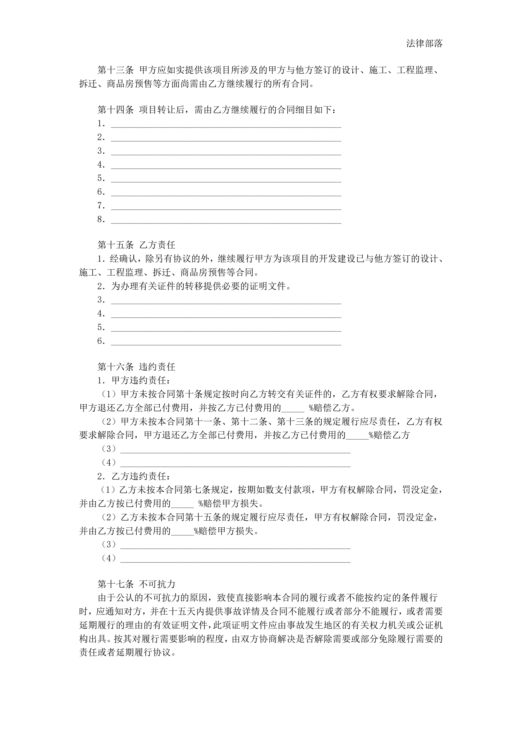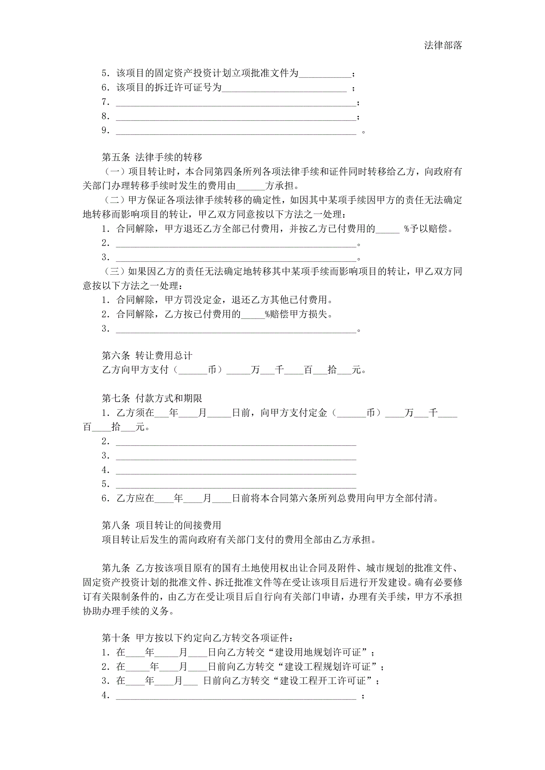 房地产项目转让合同