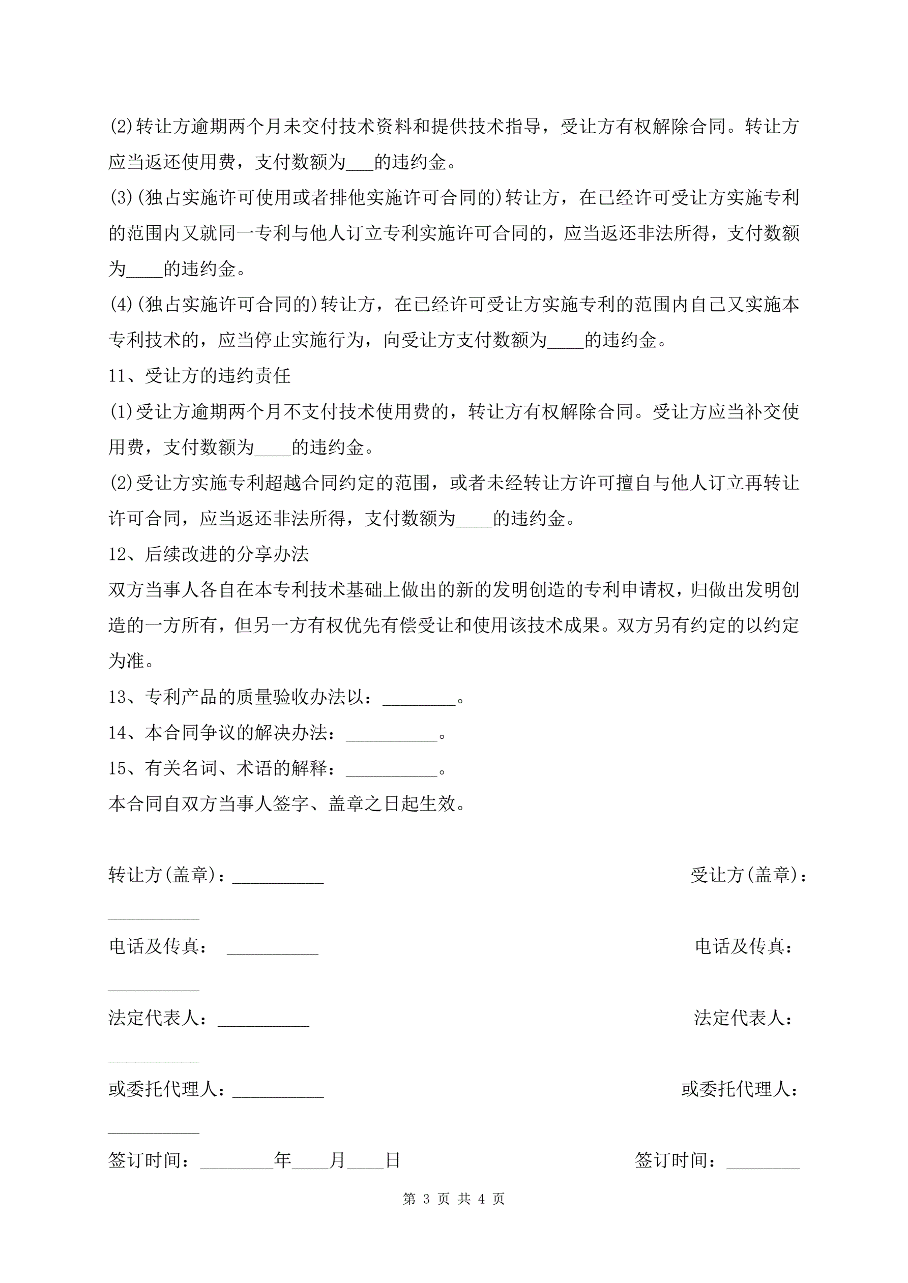 热门技术专利转让合同模板