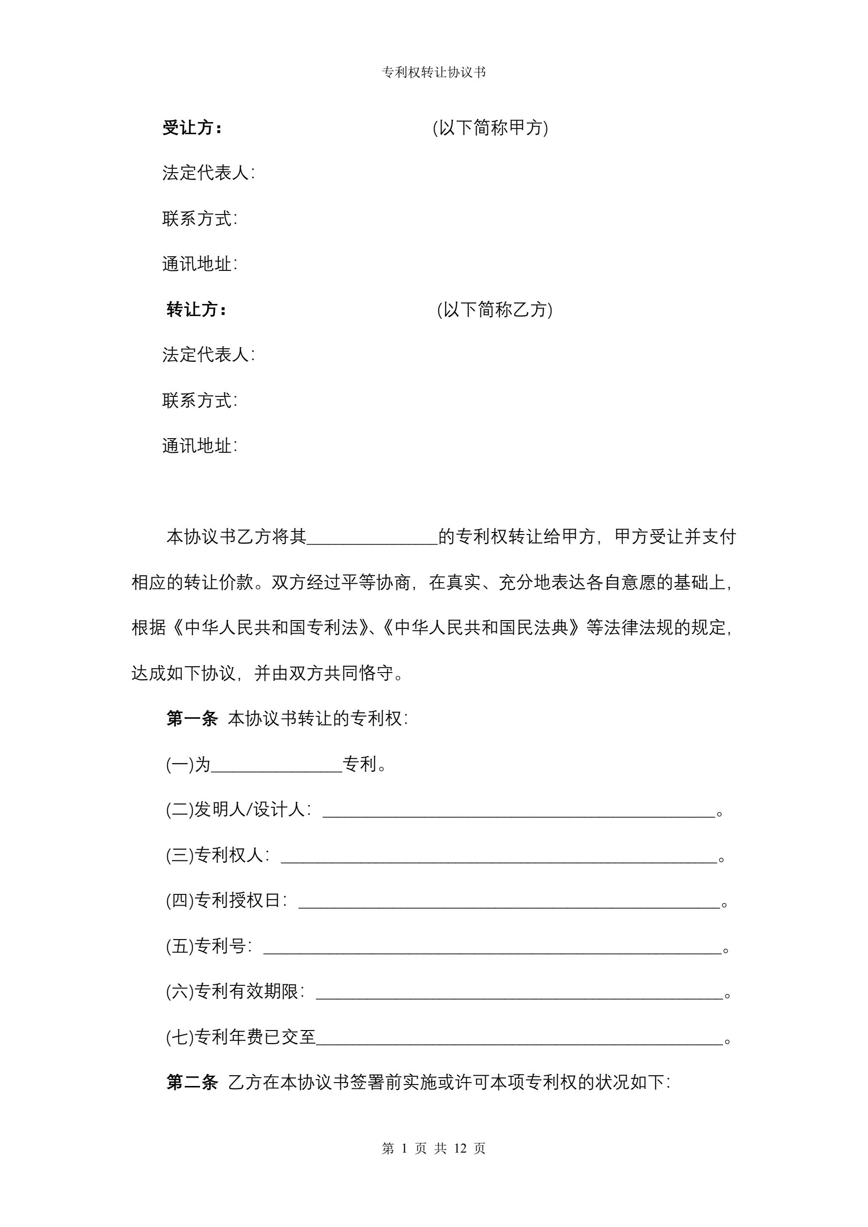 >专利权转让协议书(指导版)