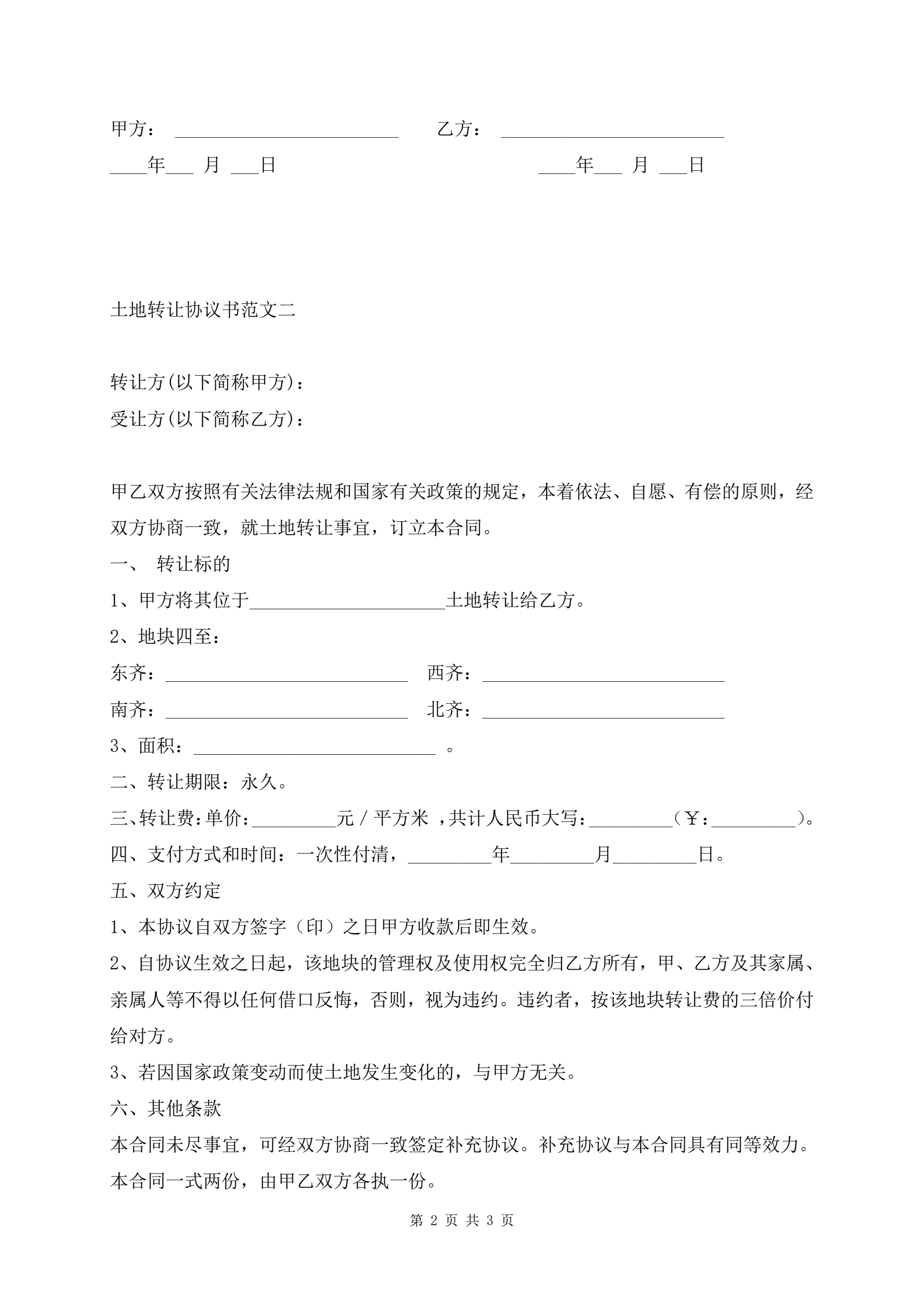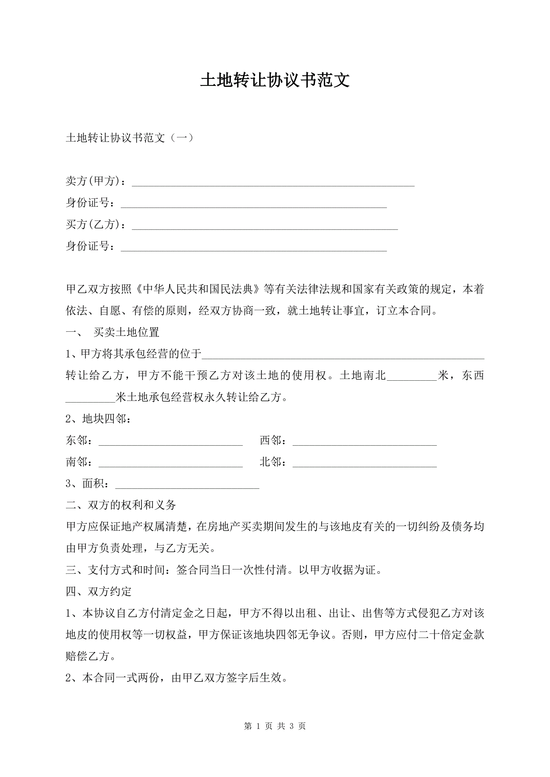 土地转让协议书范文