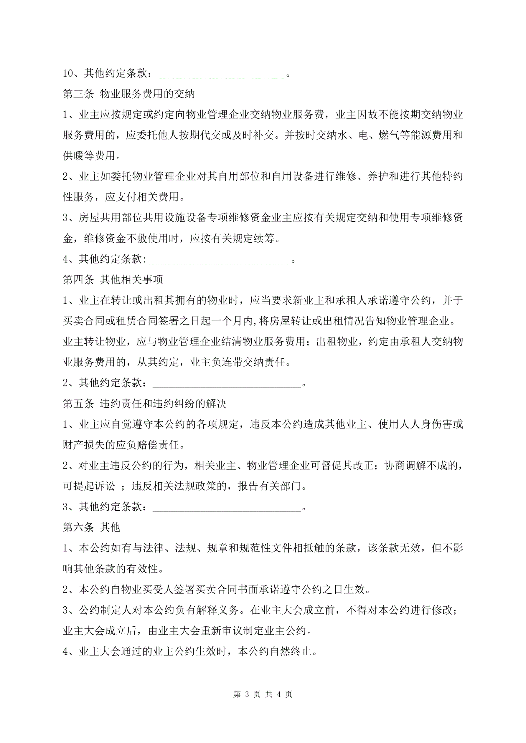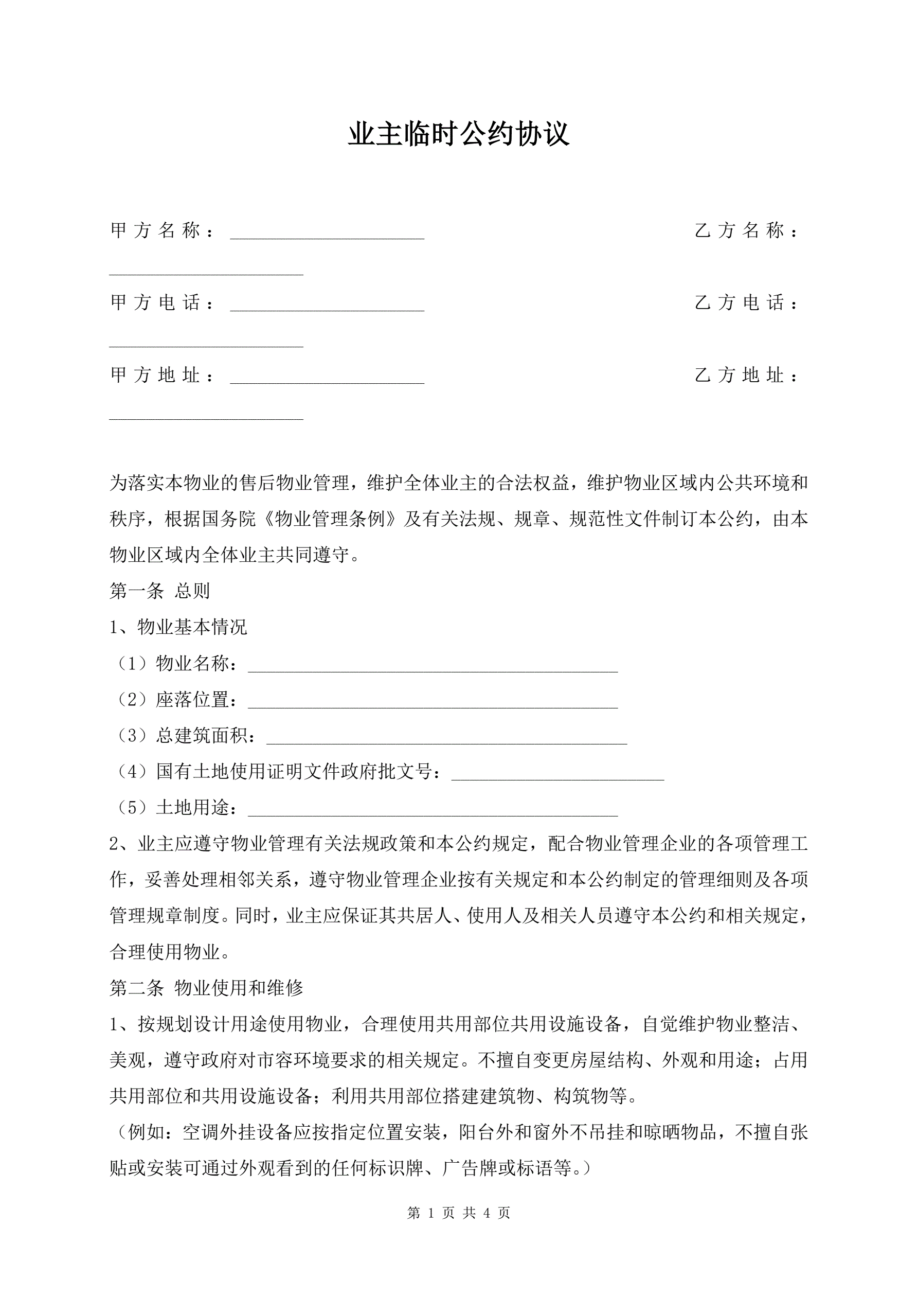 >业主临时公约协议