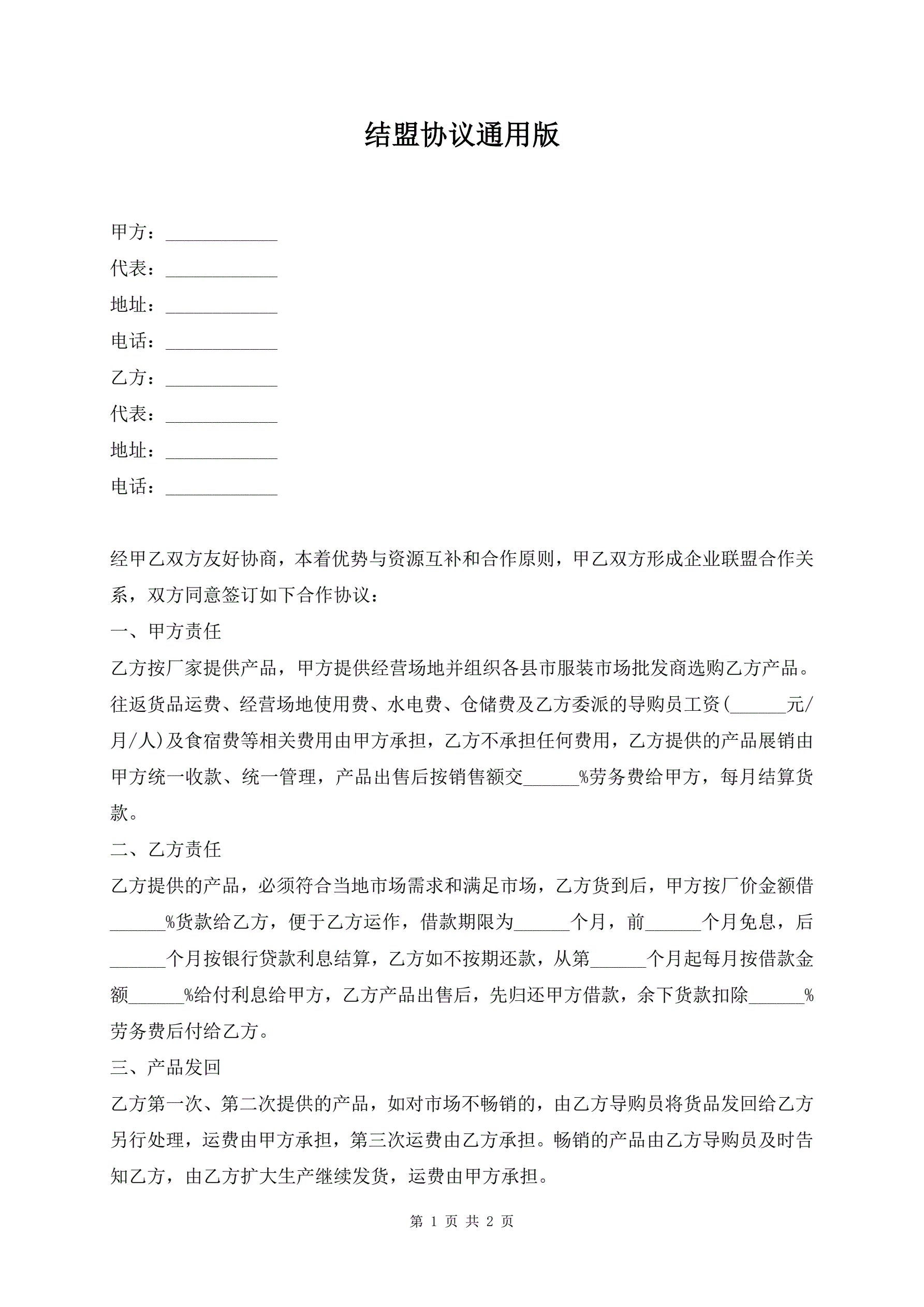 >结盟协议通用版