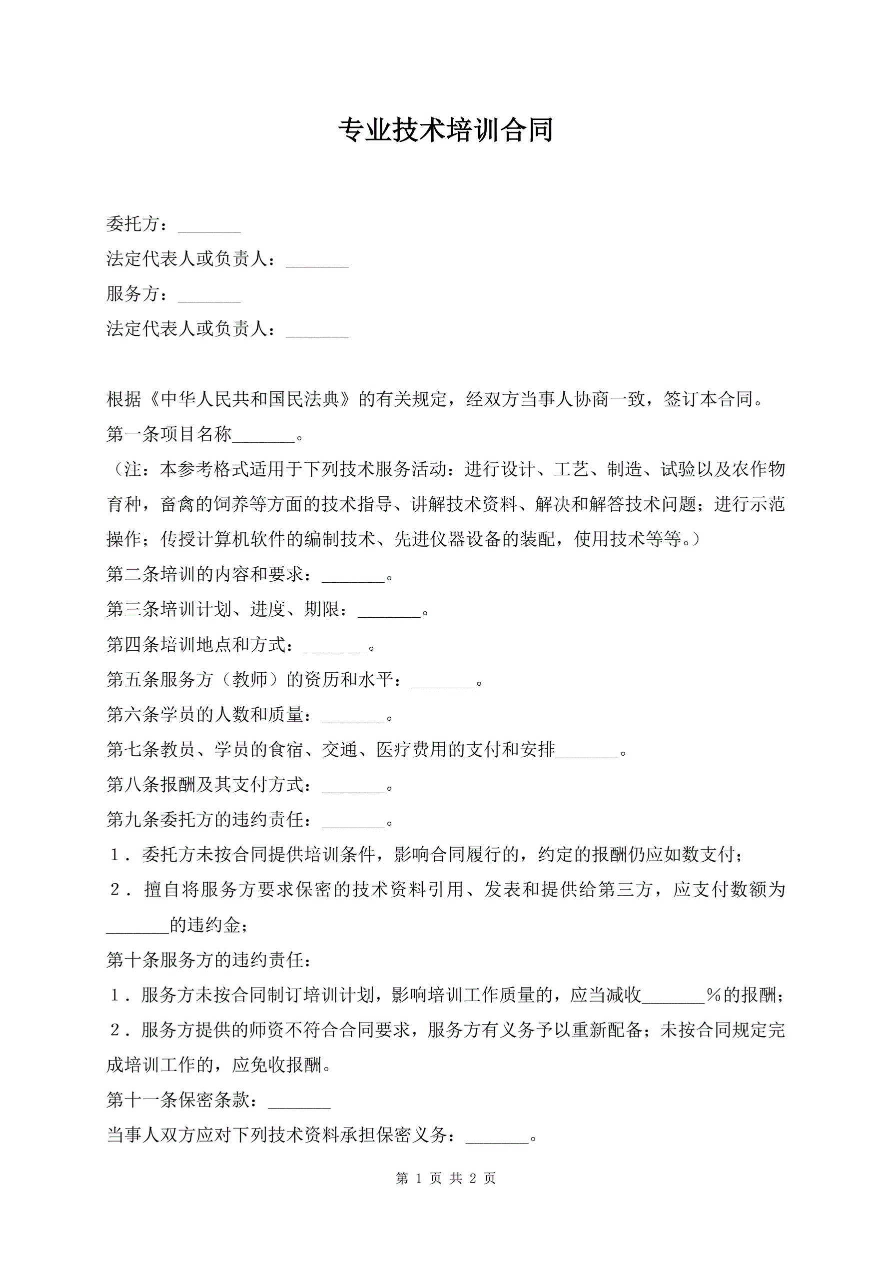 专业技术培训合同