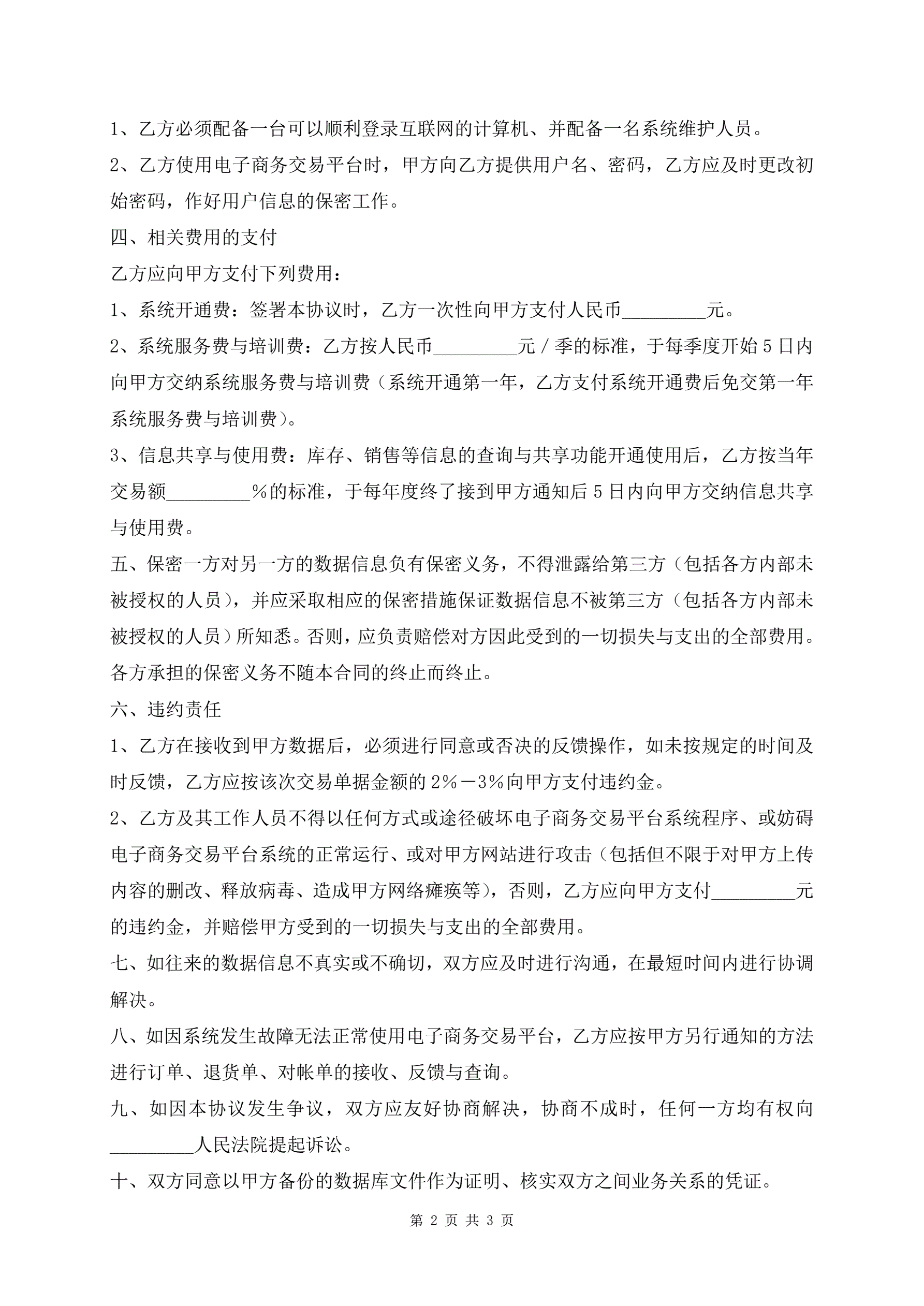 电子商务交易平台合同