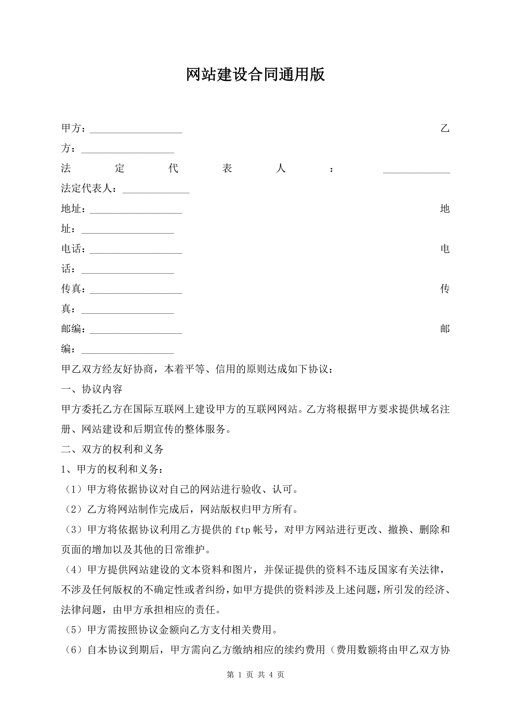 网站建设合同通用版