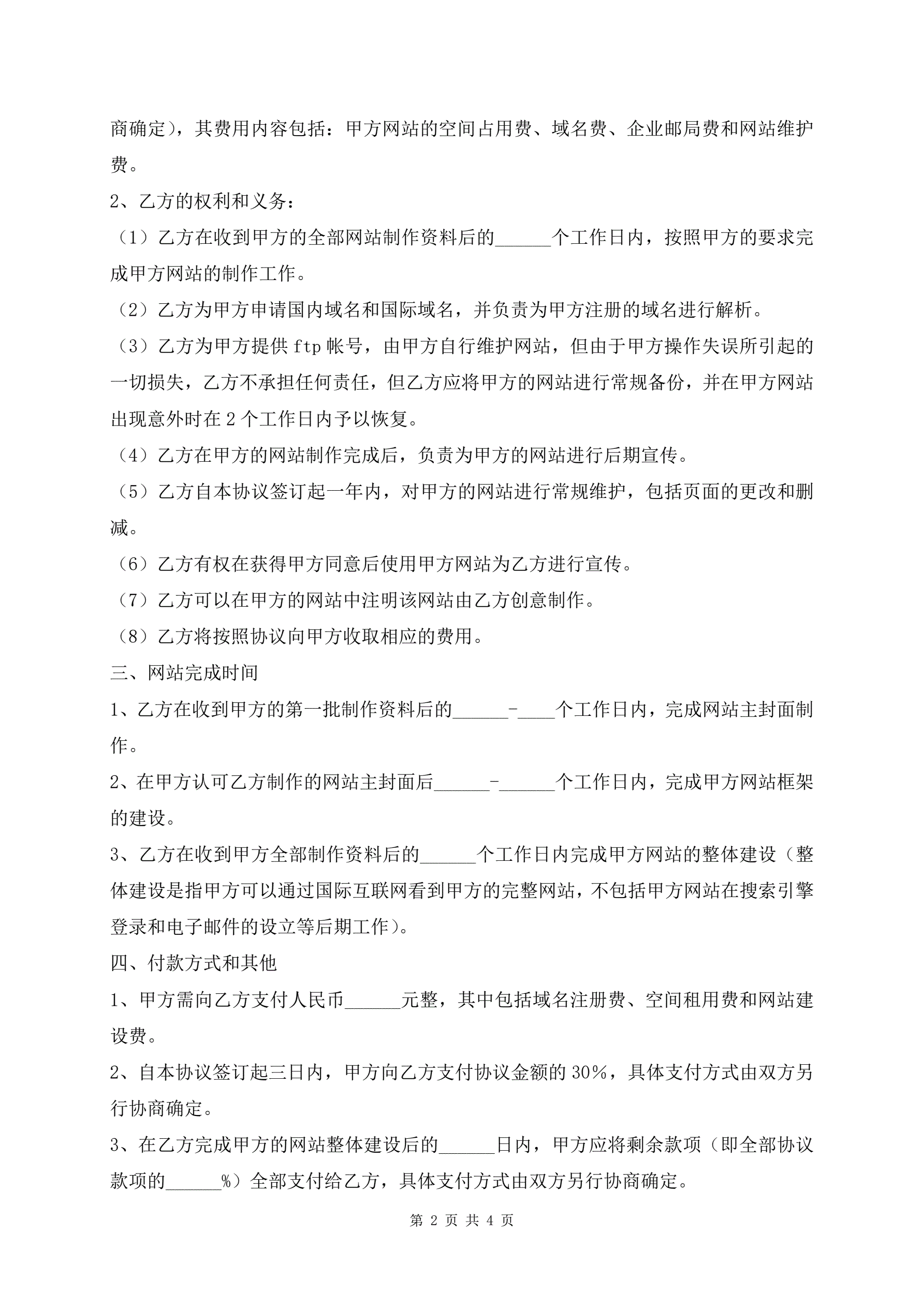 >网站建设合同通用版