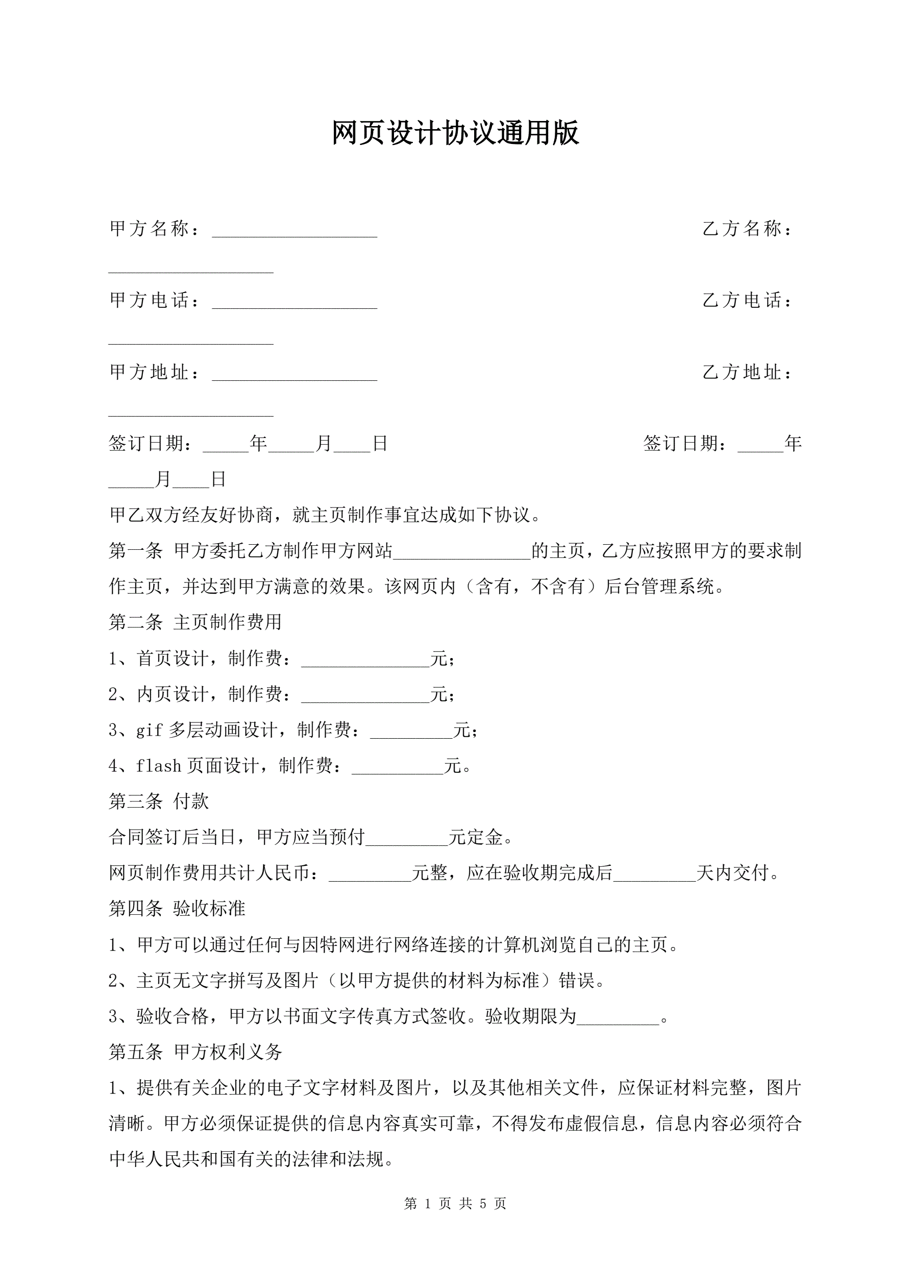 网页设计协议通用版