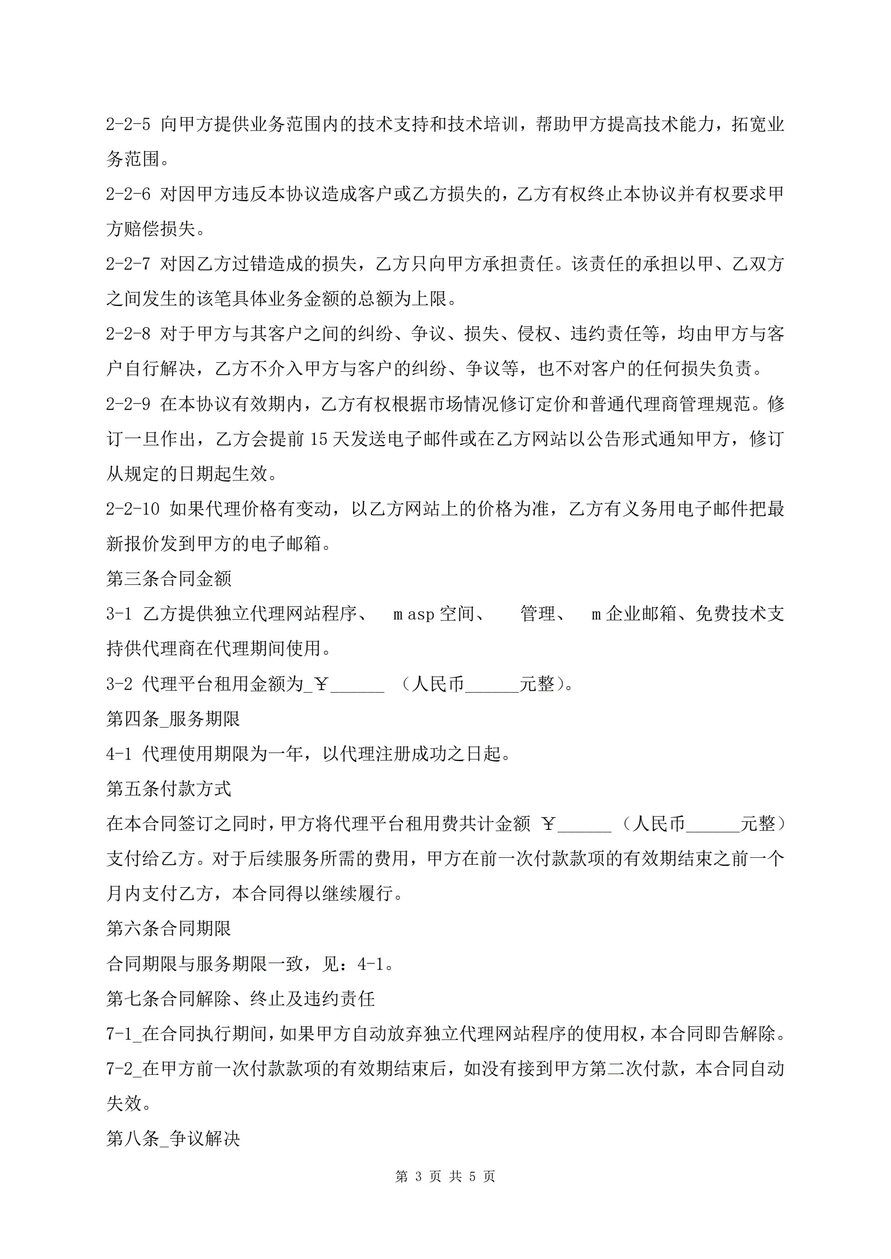 最新网络代理协议书