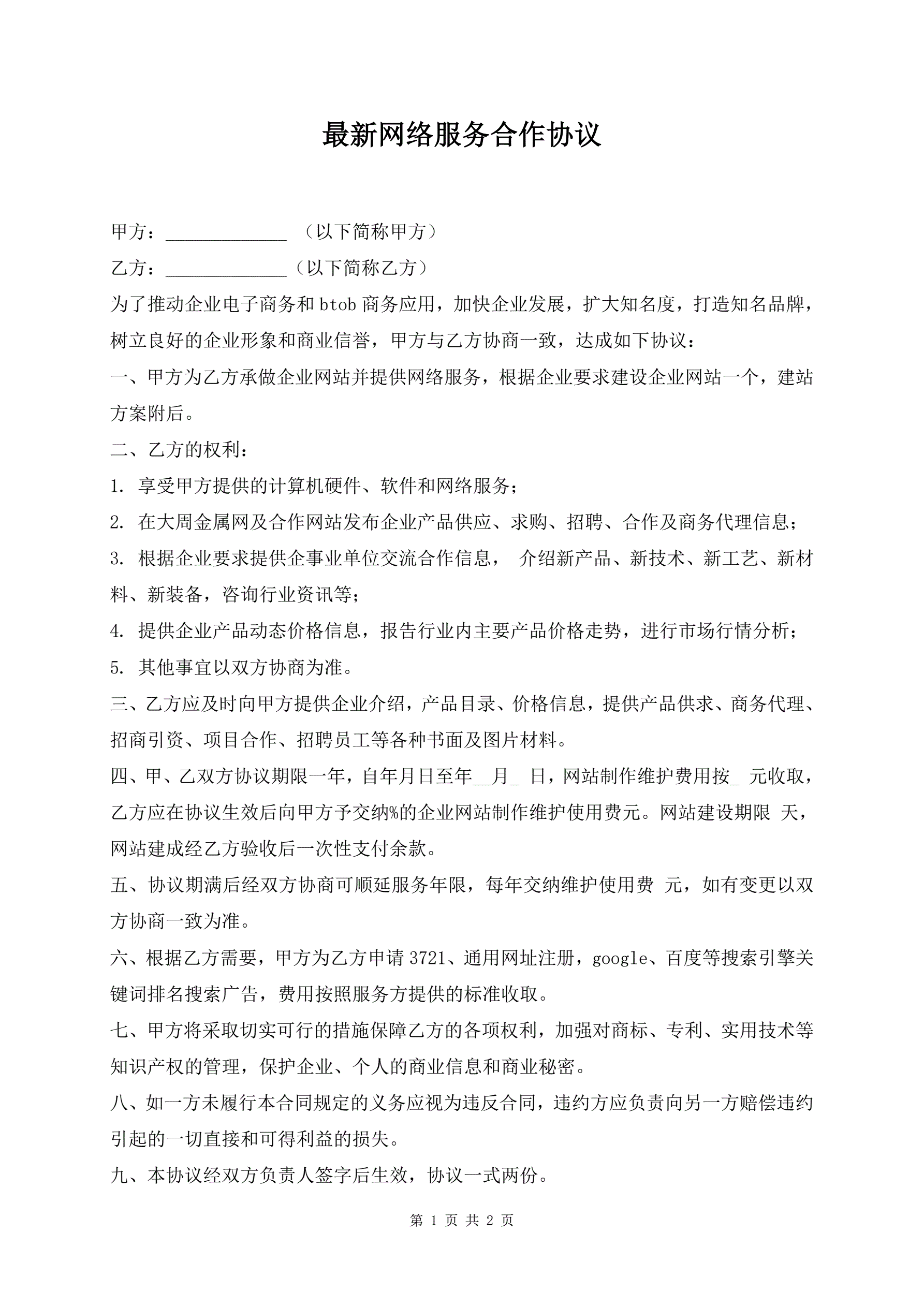 最新网络服务合作协议