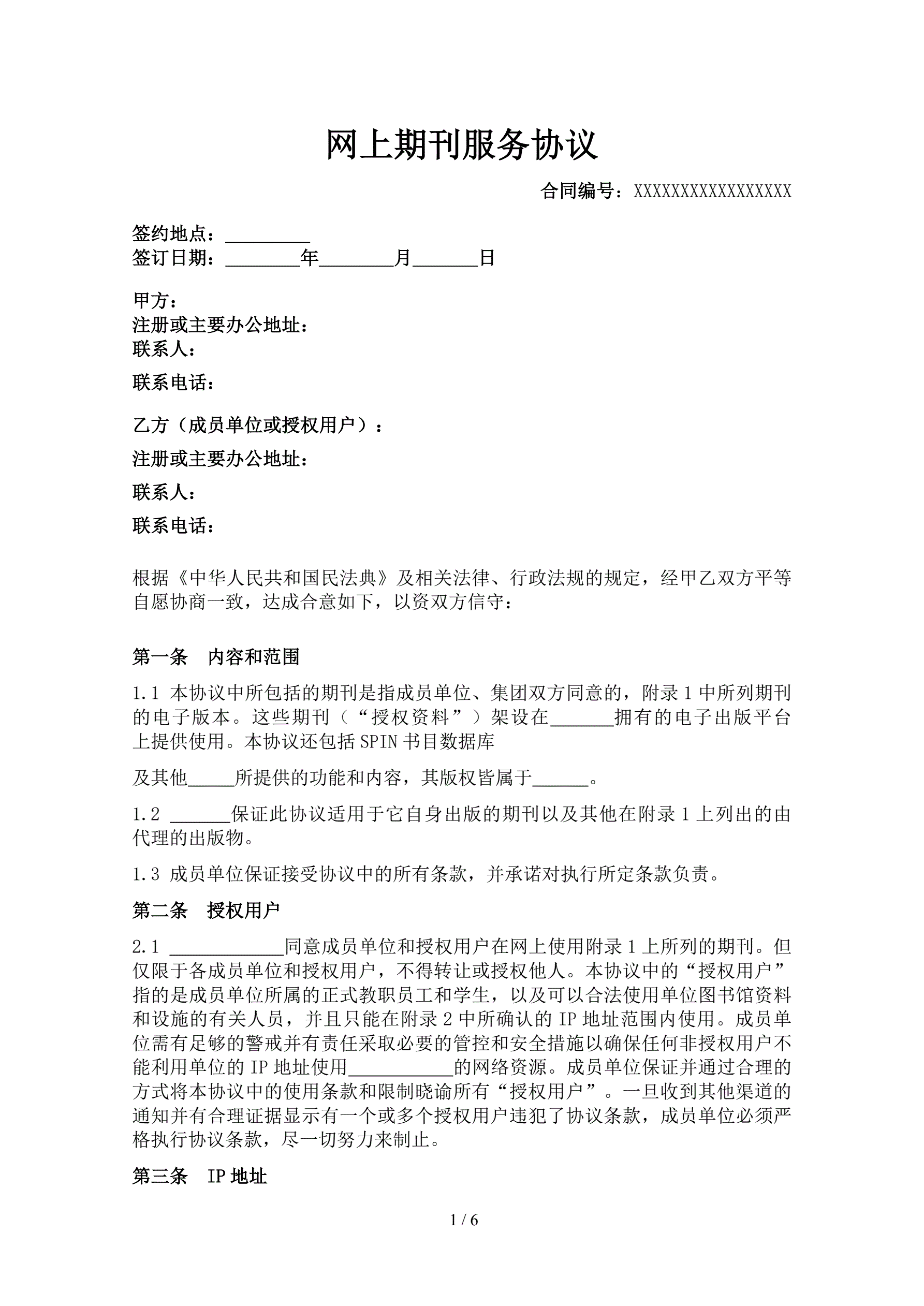 网上期刊服务协议