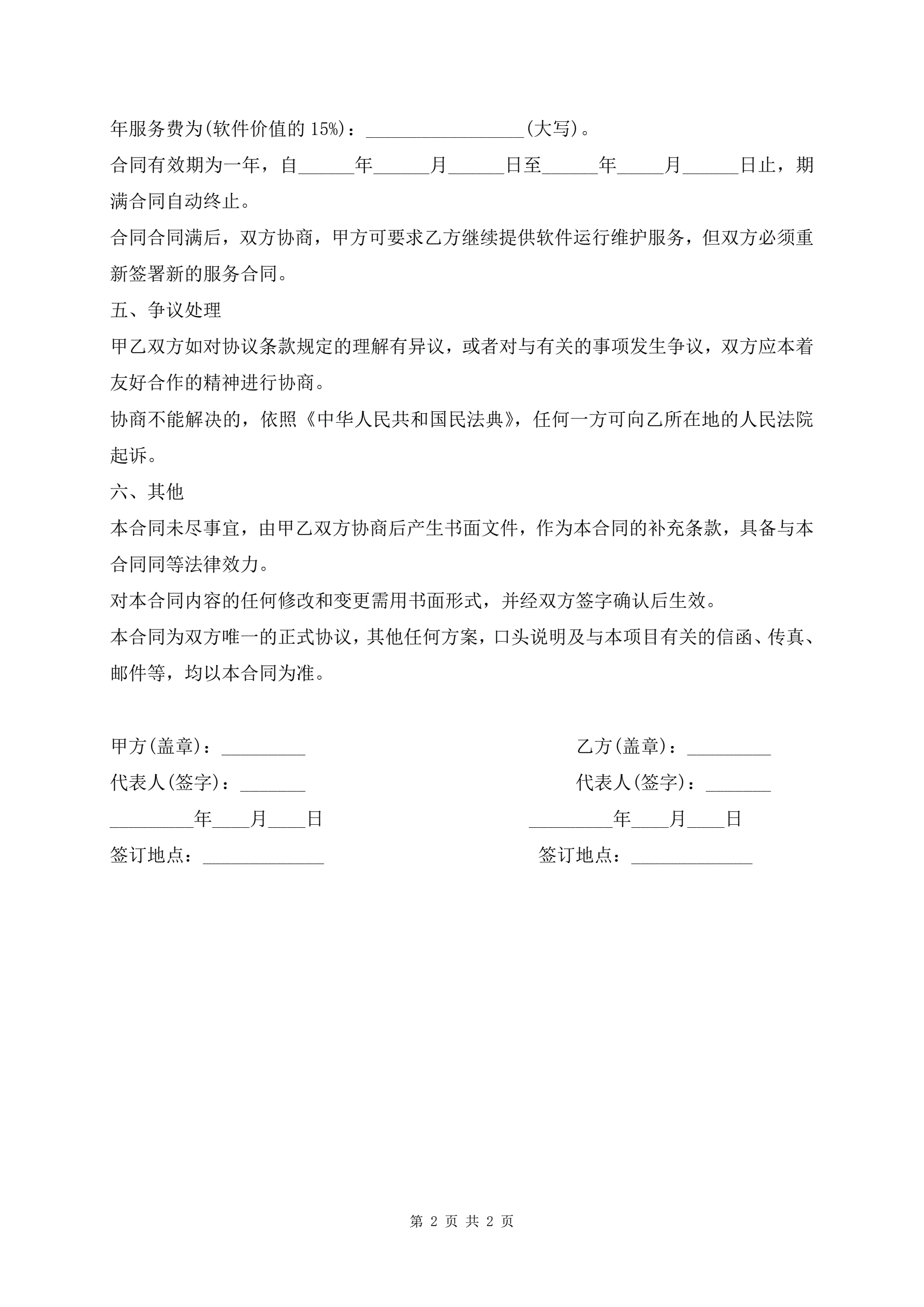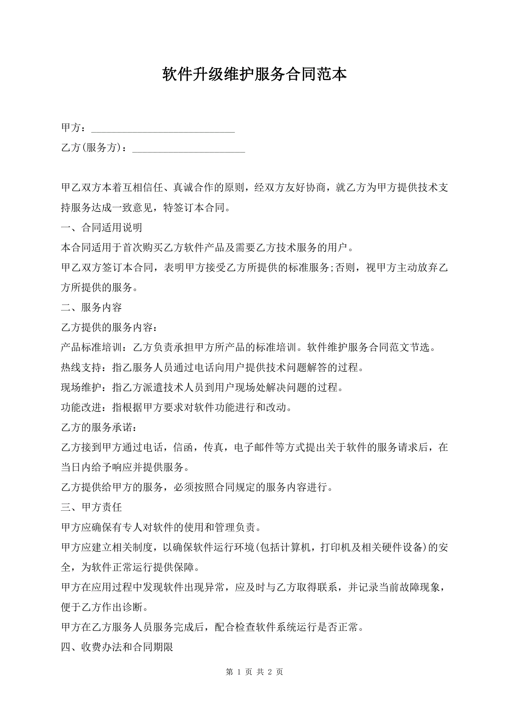 软件升级维护服务合同范本