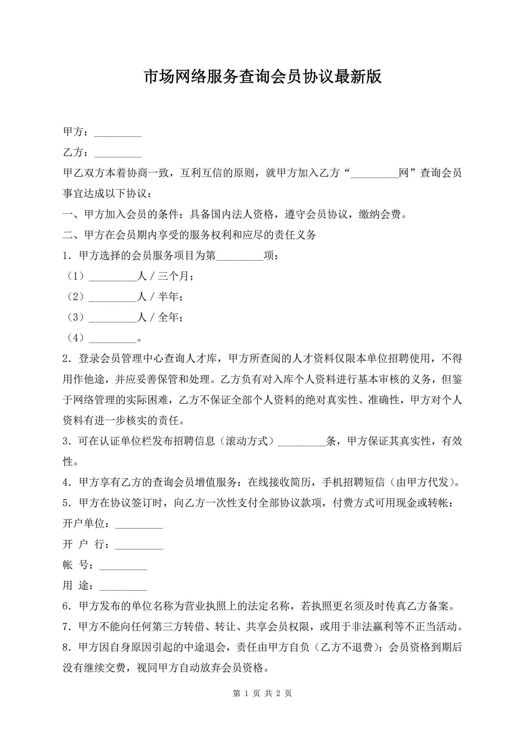 >市场网络服务查询会员协议最新版