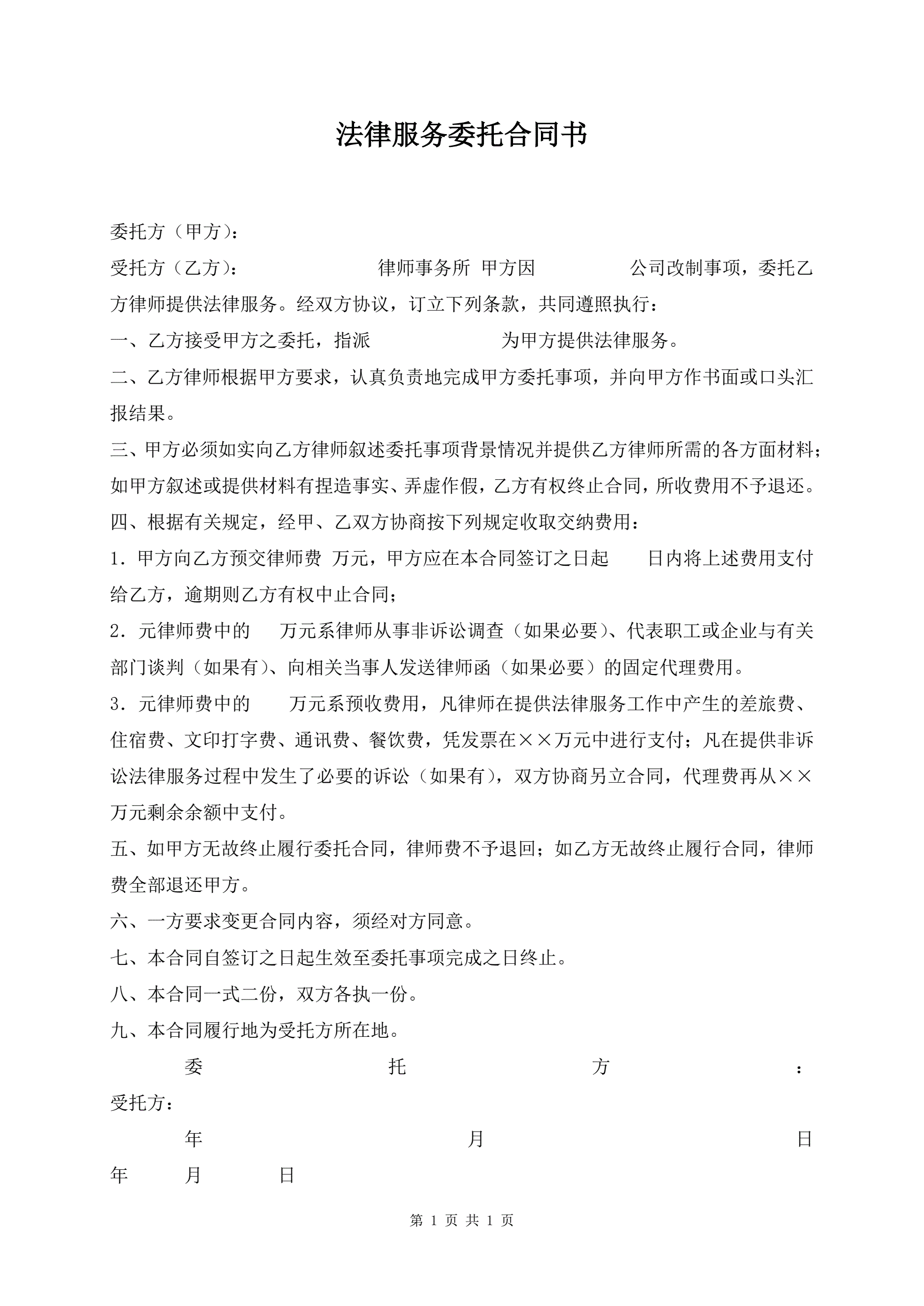 法律服务委托合同书
