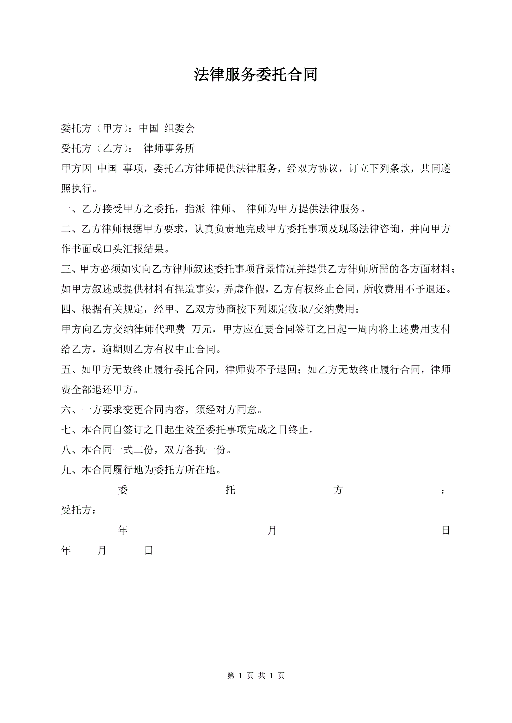 法律服务委托合同