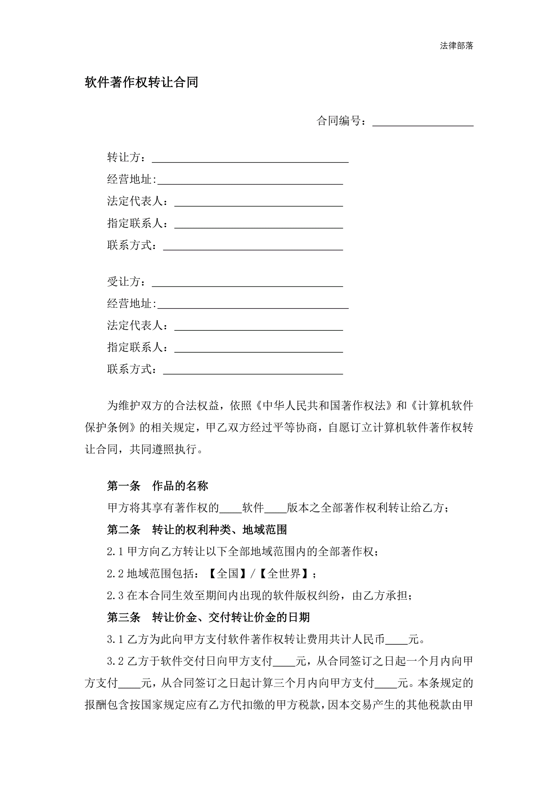 软件著作权转让合同