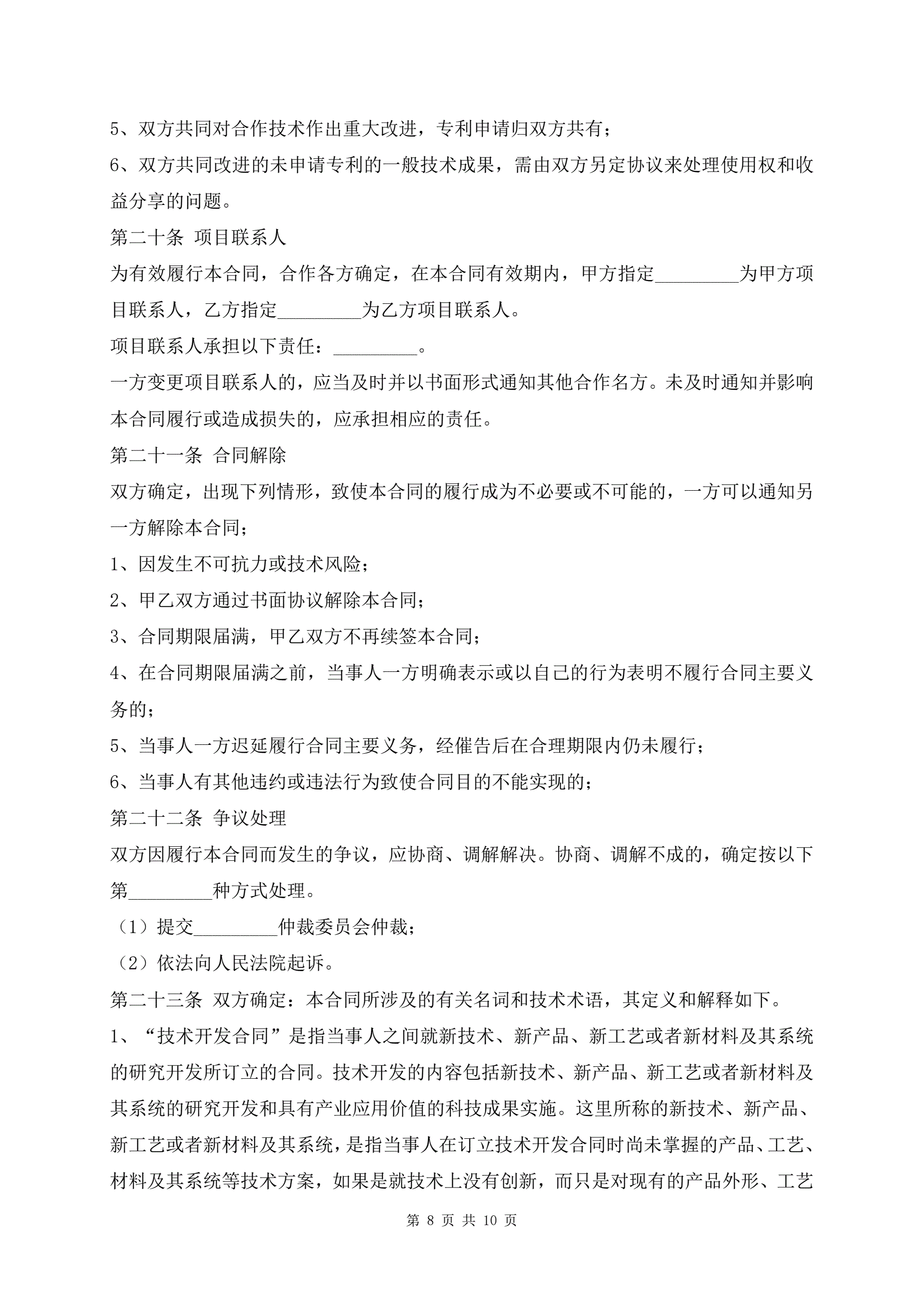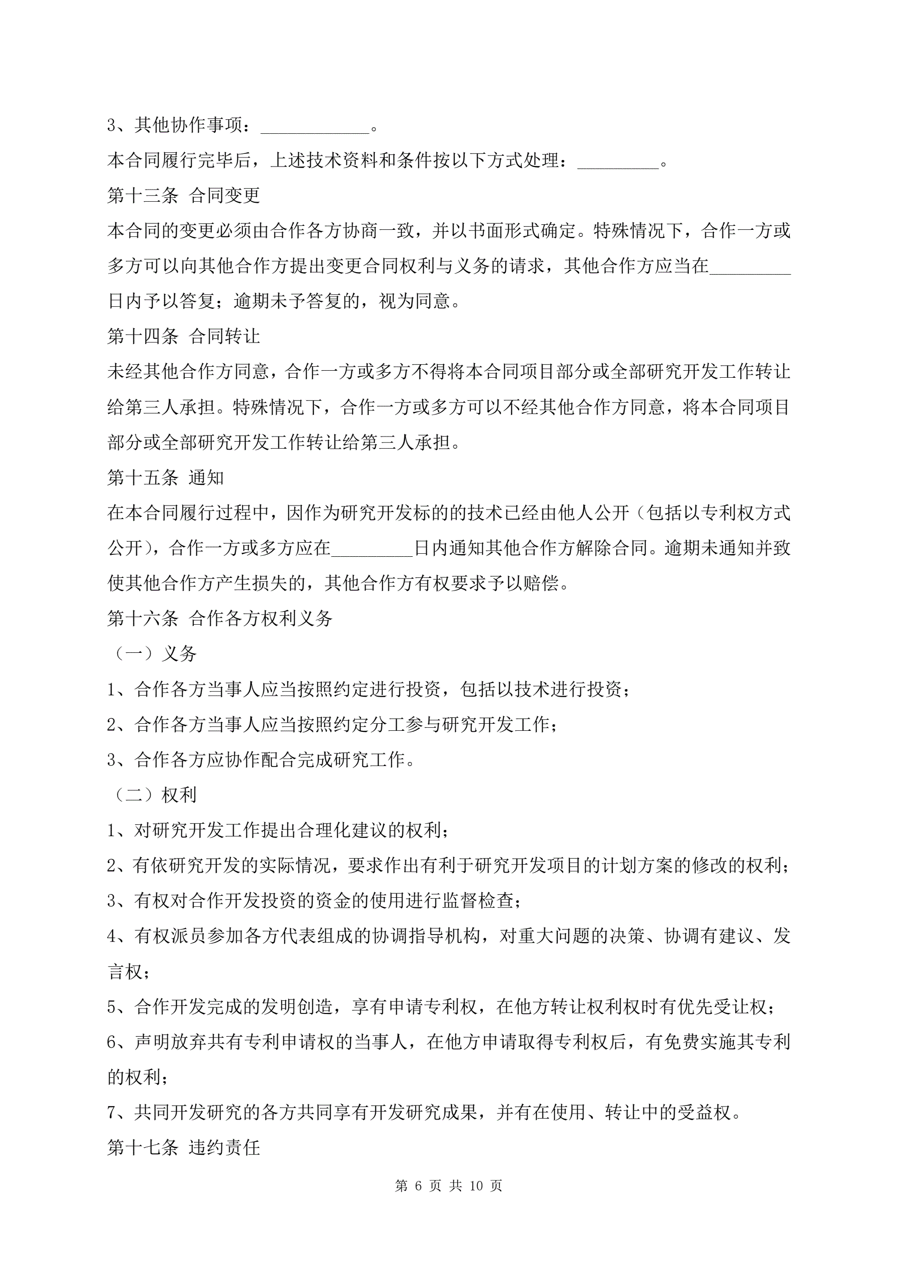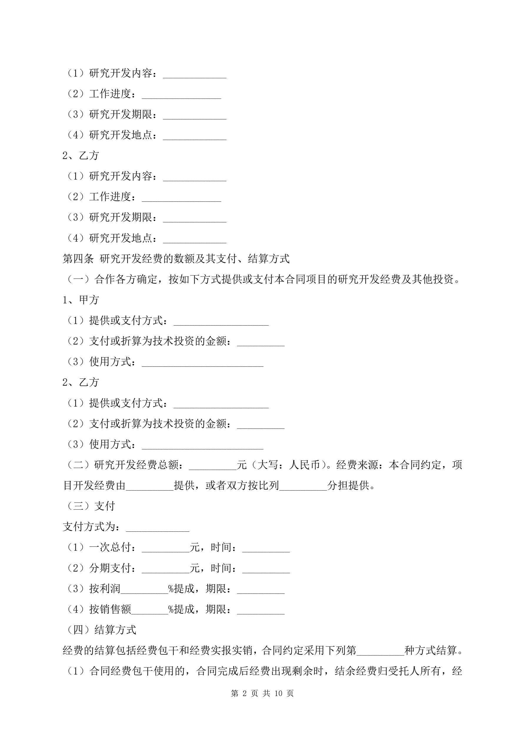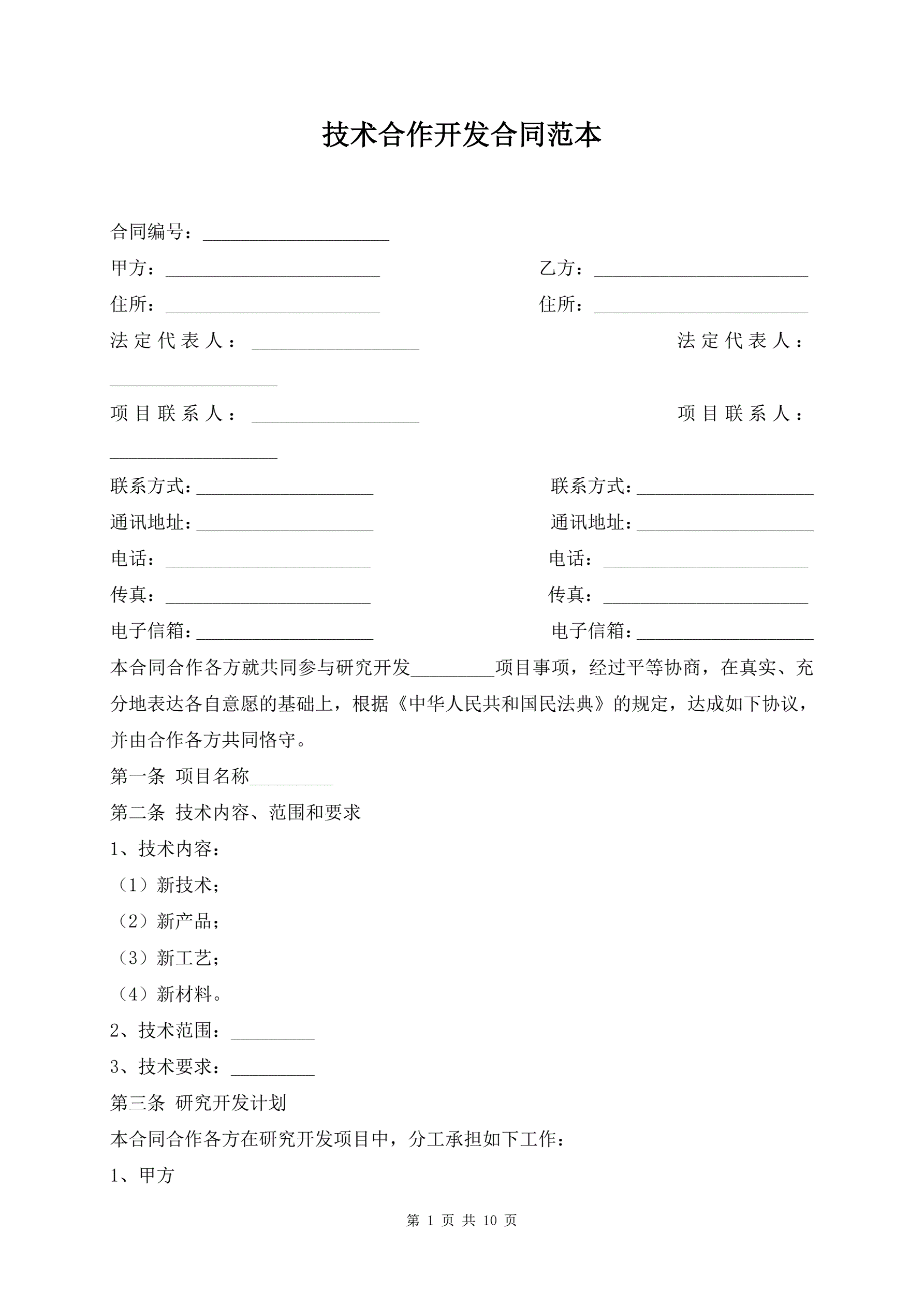 技术合作开发合同范本