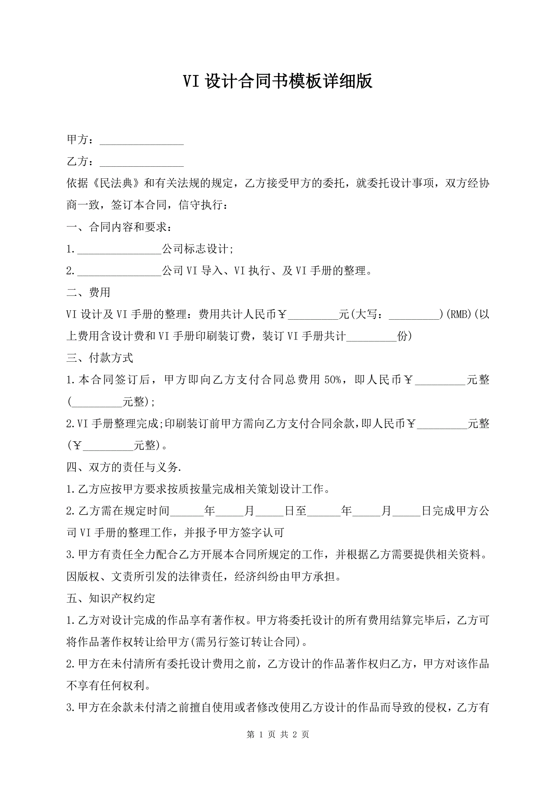 VI设计合同书模板详细版