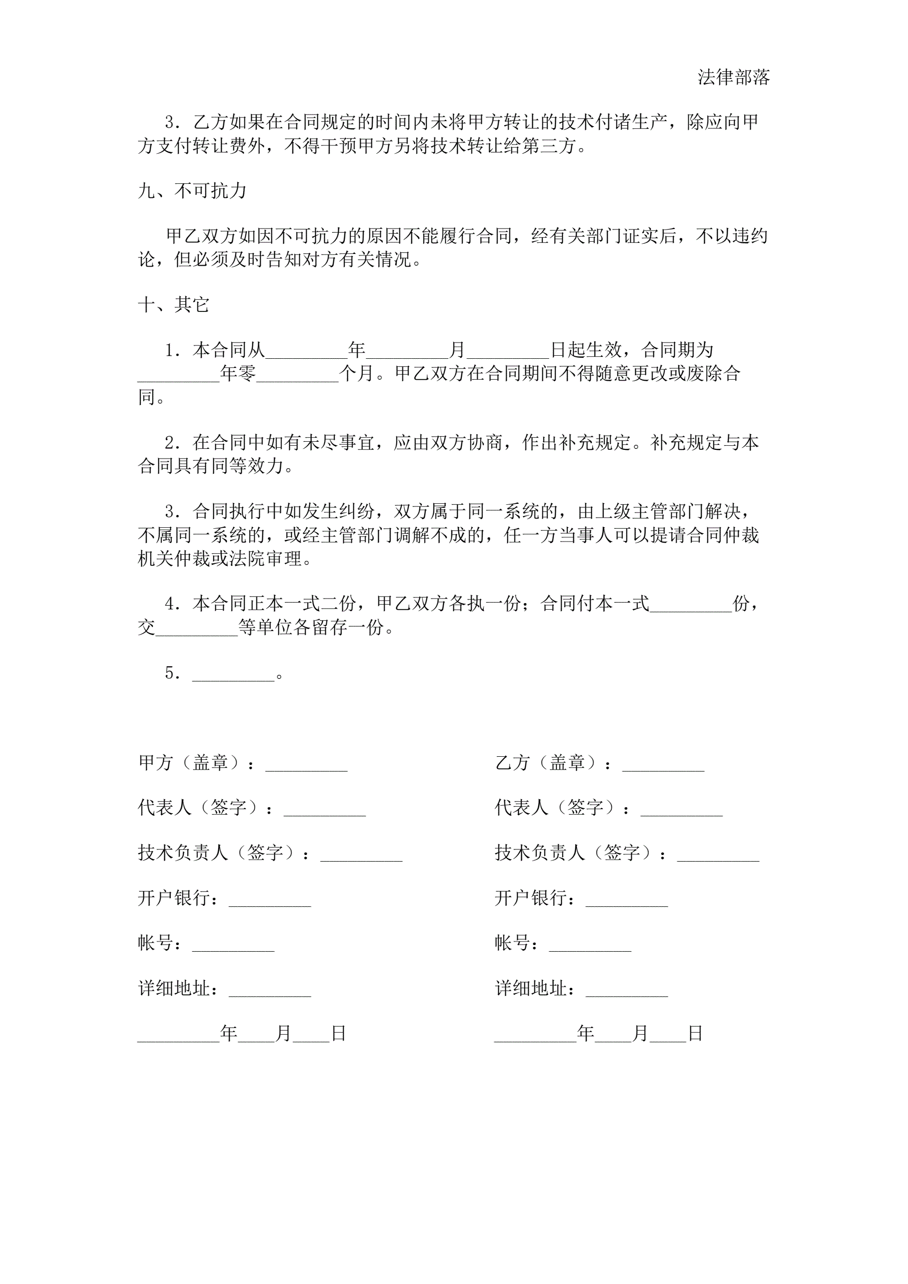 产品技术转让合同范本