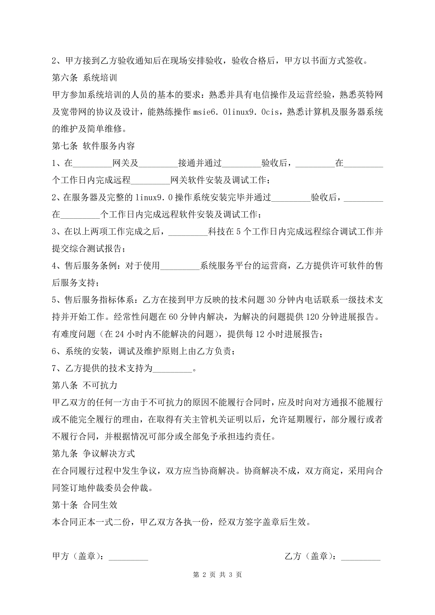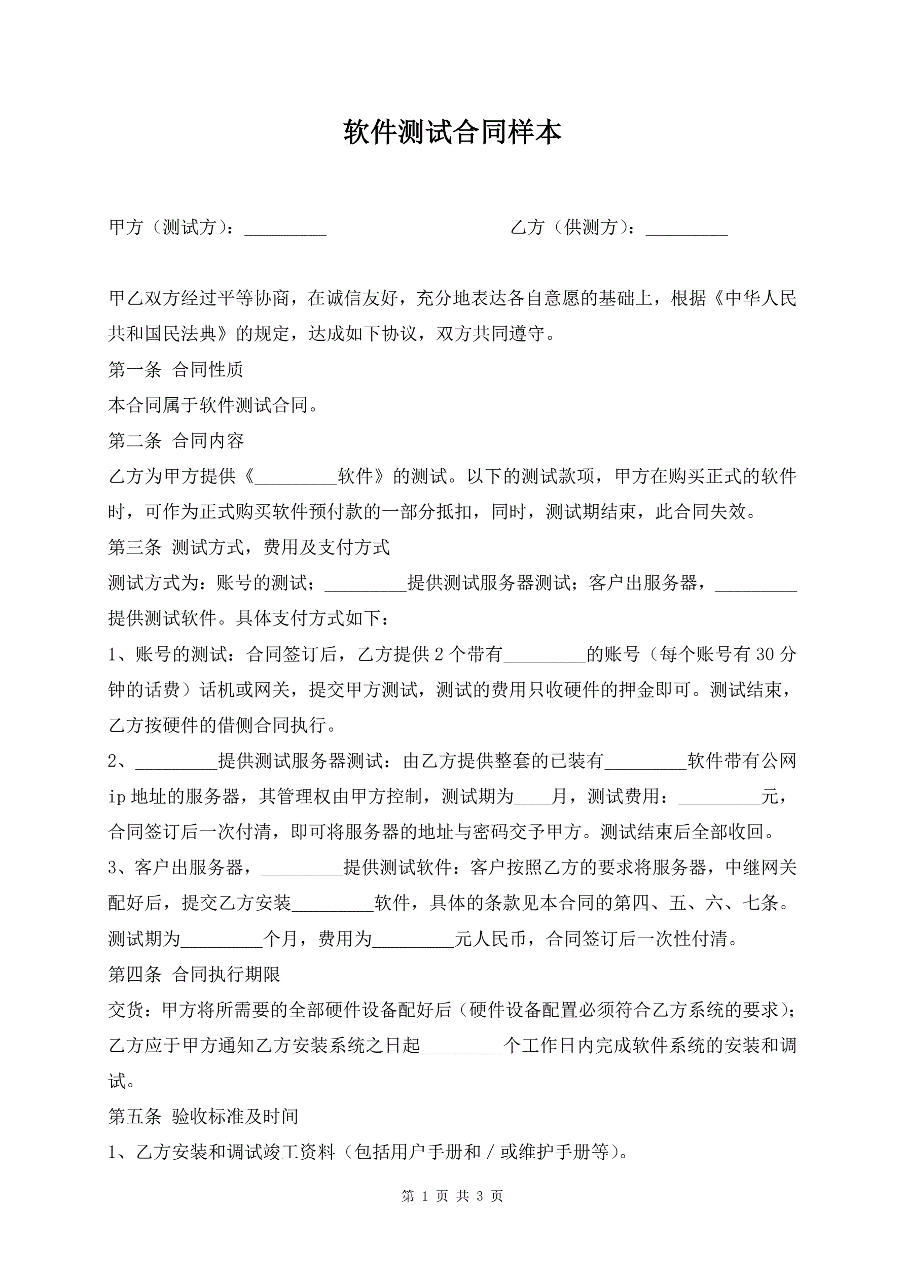 软件测试合同样本