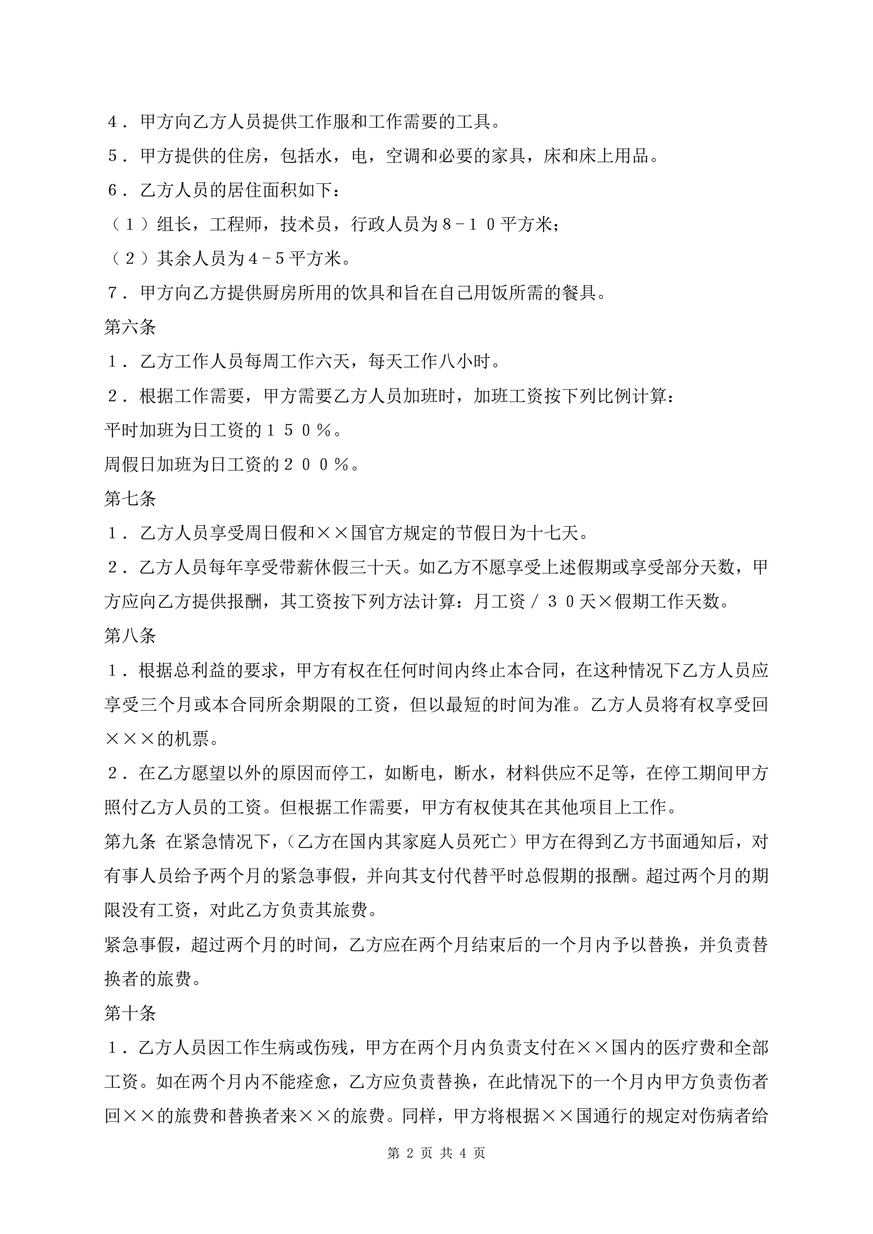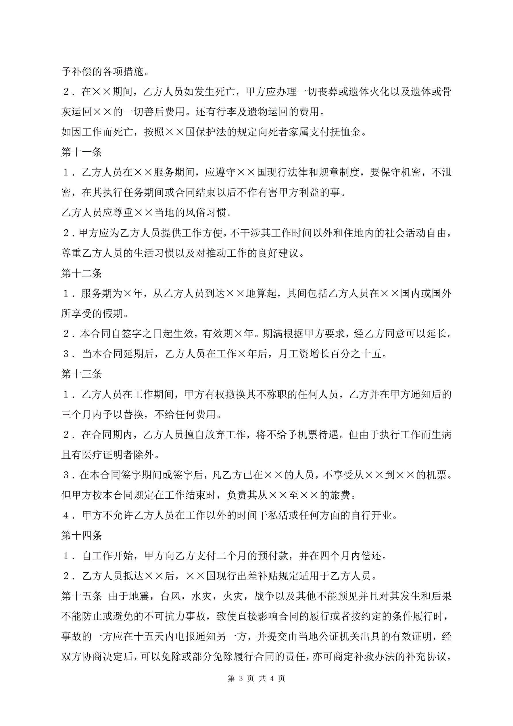 >中外劳动技术工作服务合同新版
