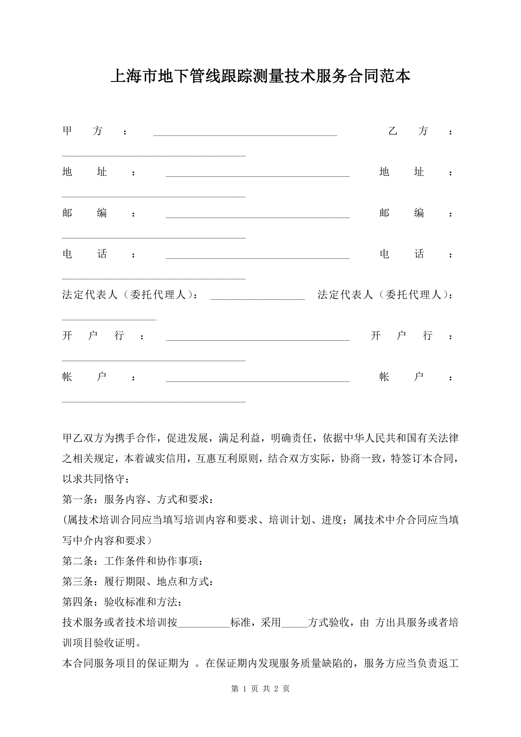 上海市地下管线跟踪测量技术服务合同范本