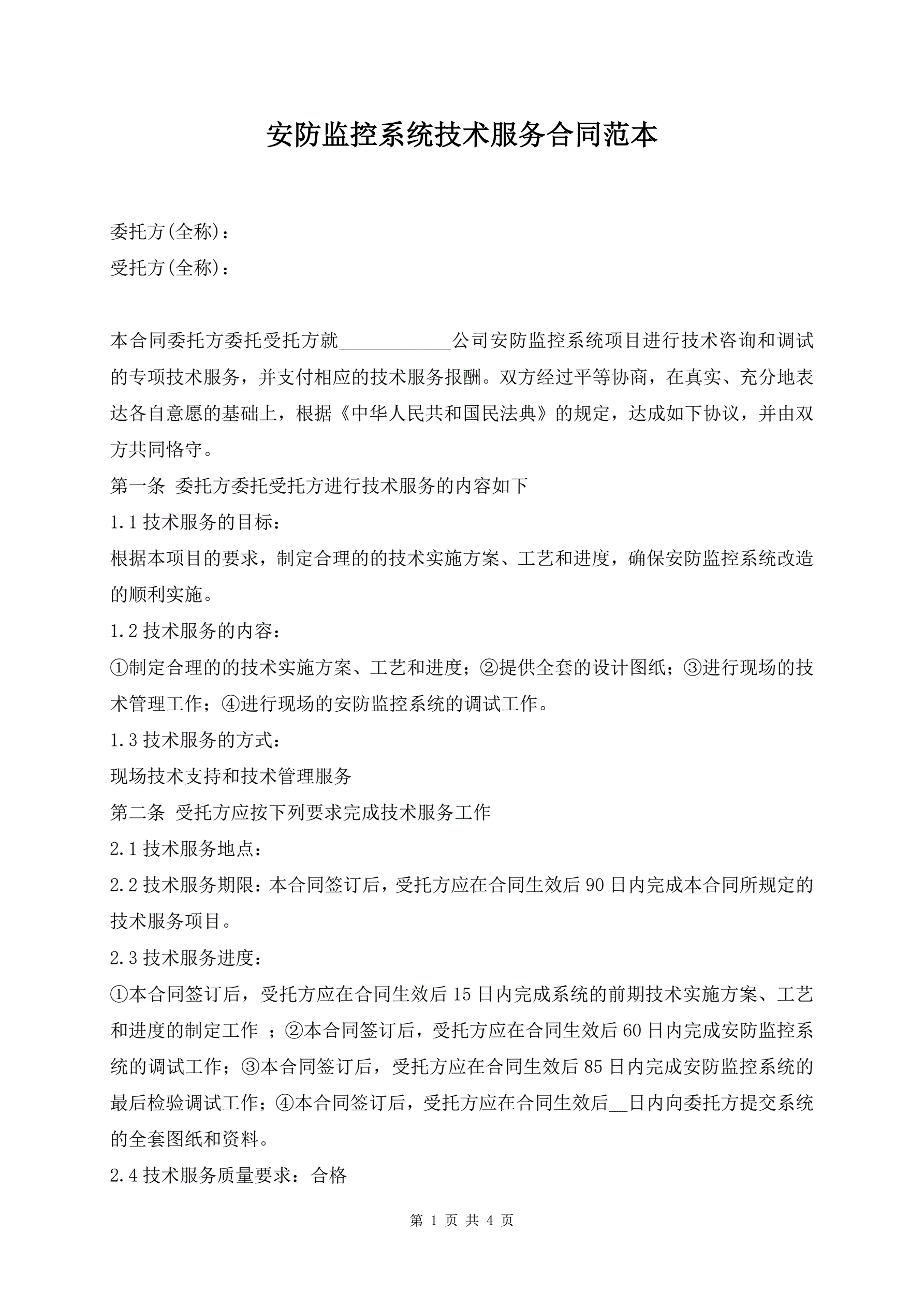 安防监控系统技术服务合同范本