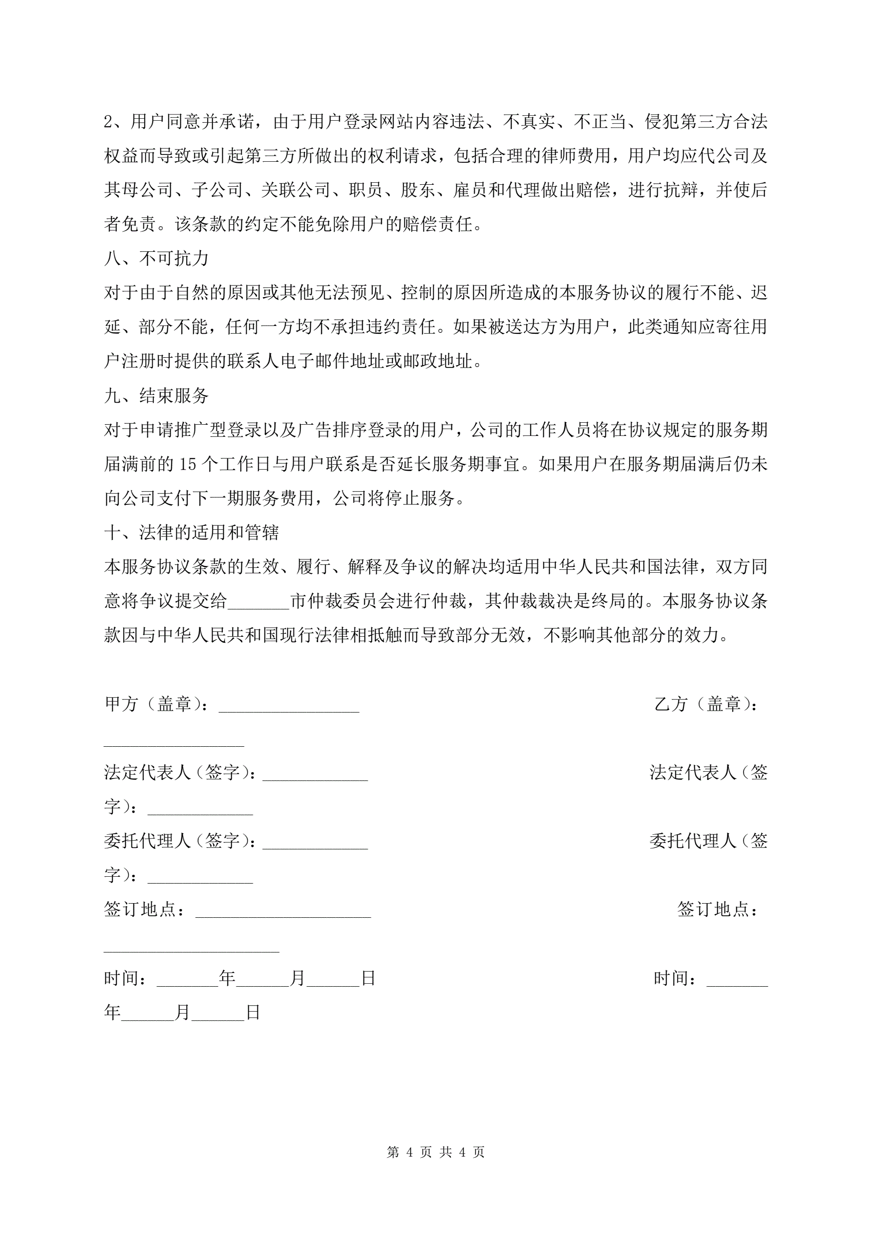 搜索引擎服务条款协议