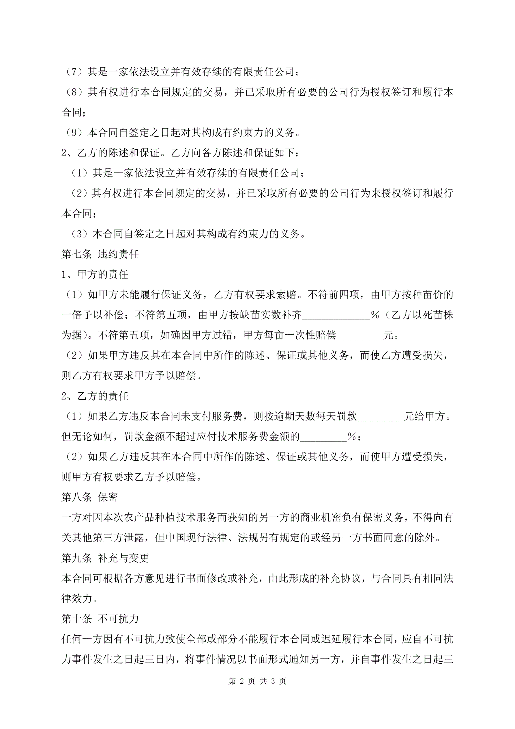 农产品种植技术服务协议样本