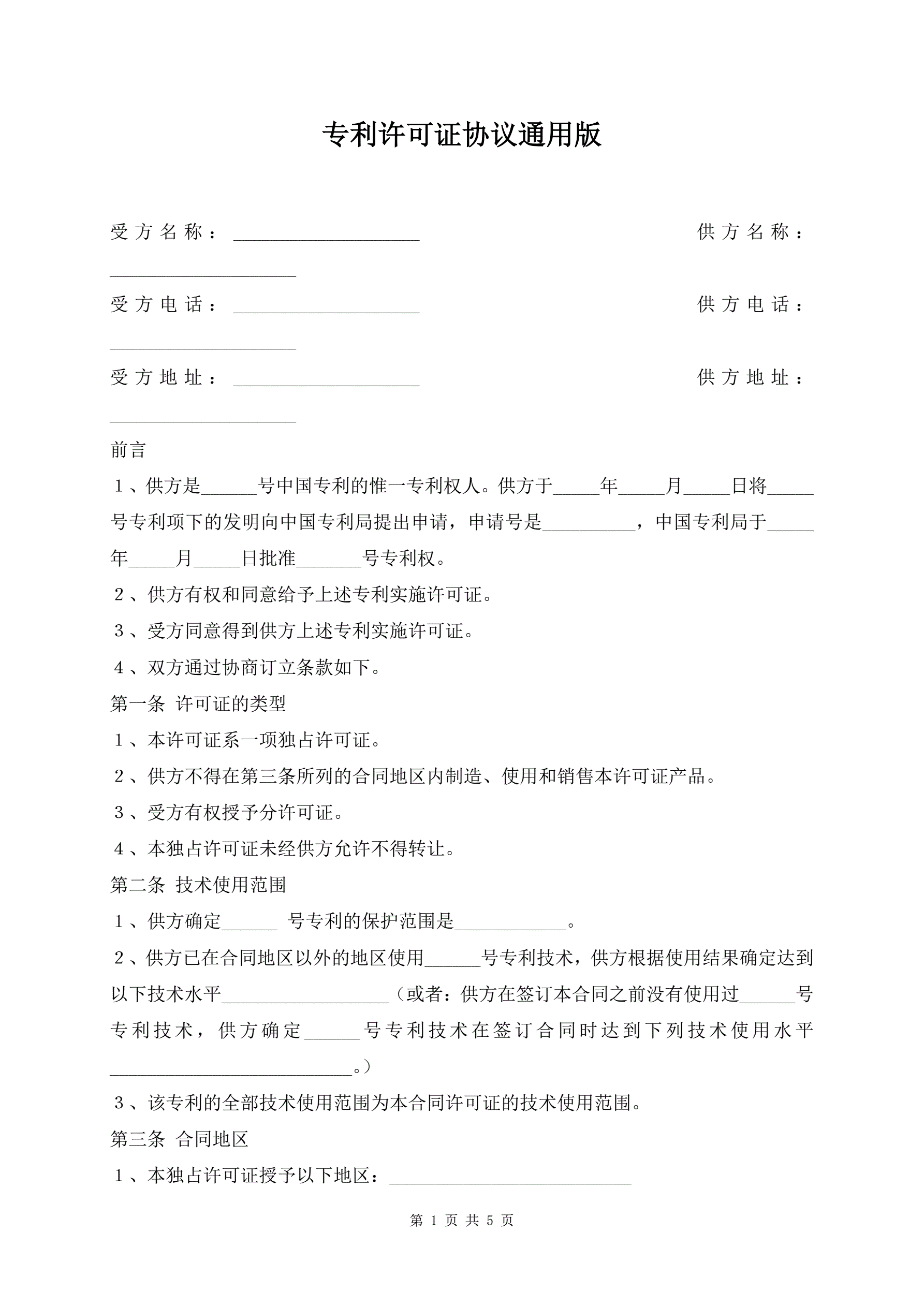 >专利许可证协议通用版
