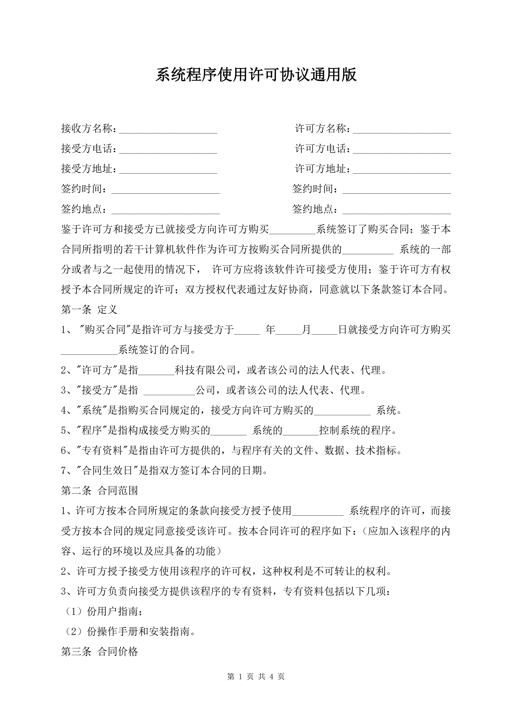 >系统程序使用许可协议通用版