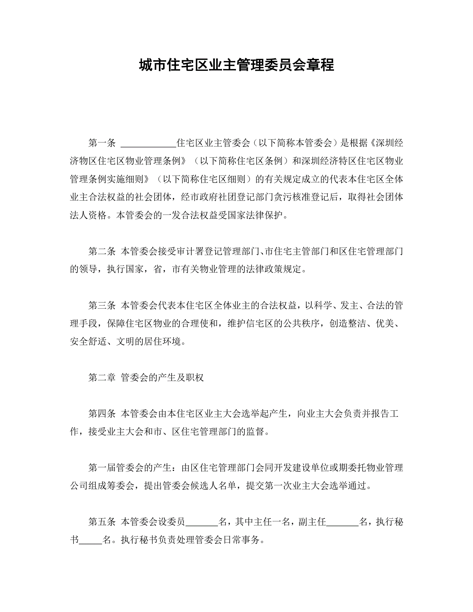 合同名称:城市住宅区业主管理委员会章程
