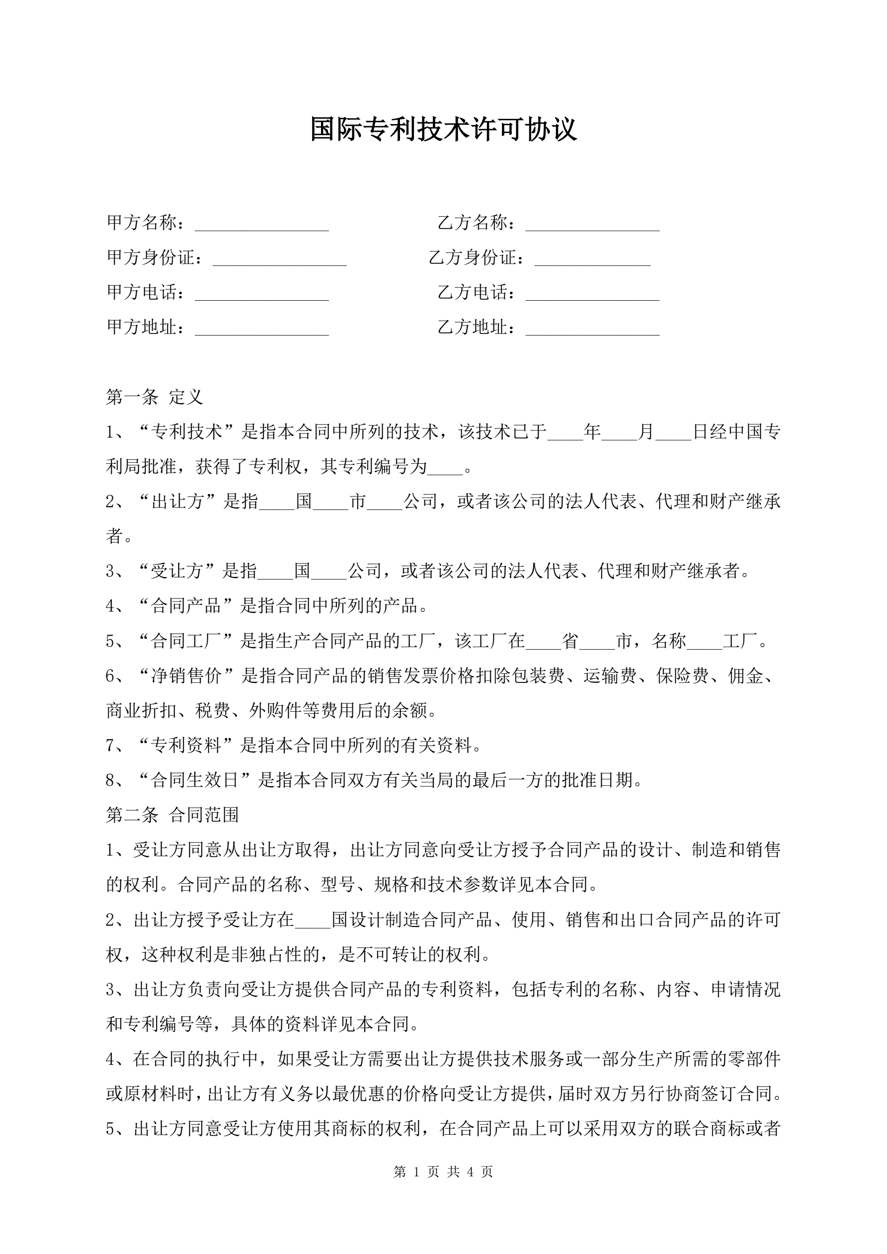 国际专利技术许可协议