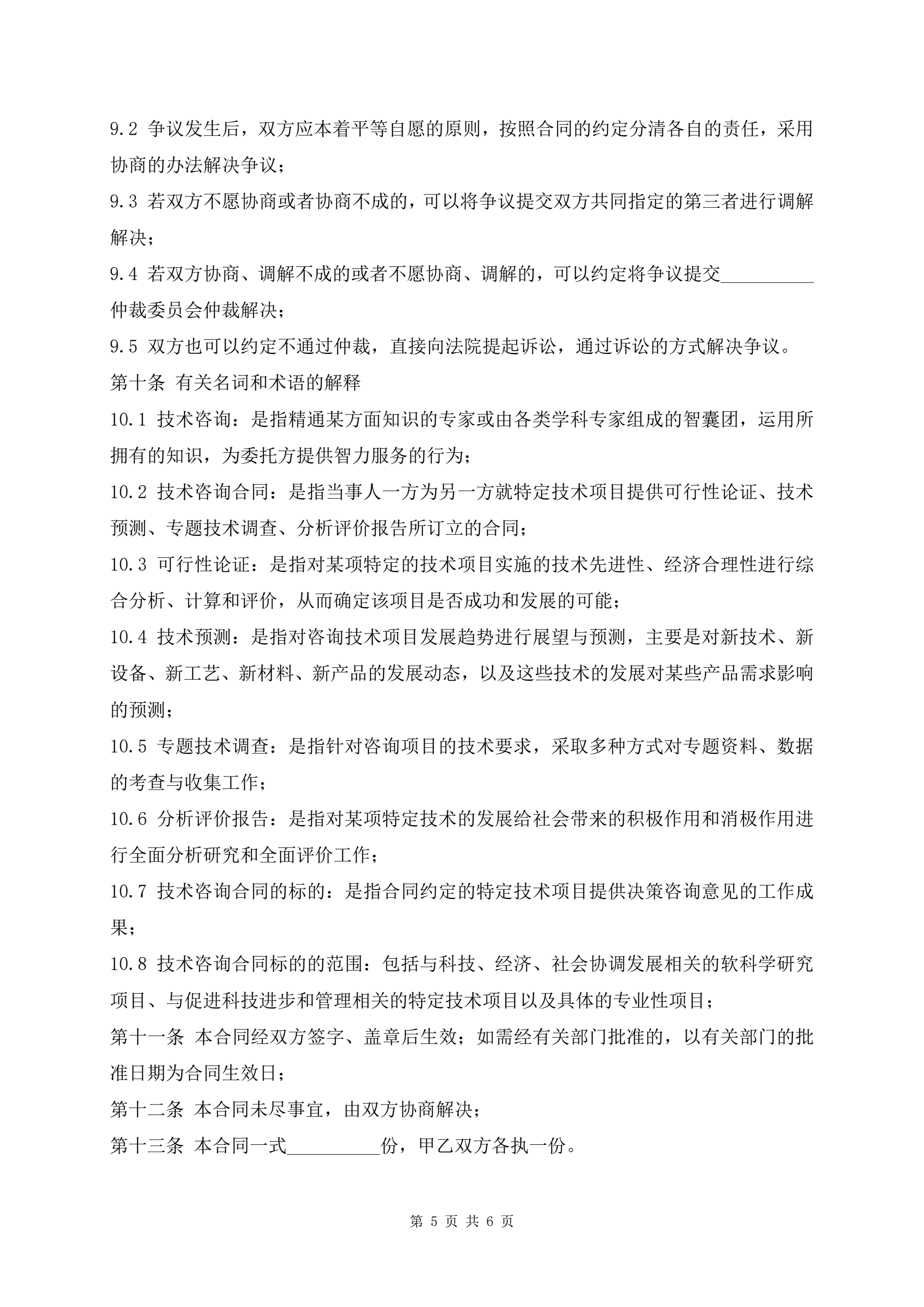 技术咨询合同范本