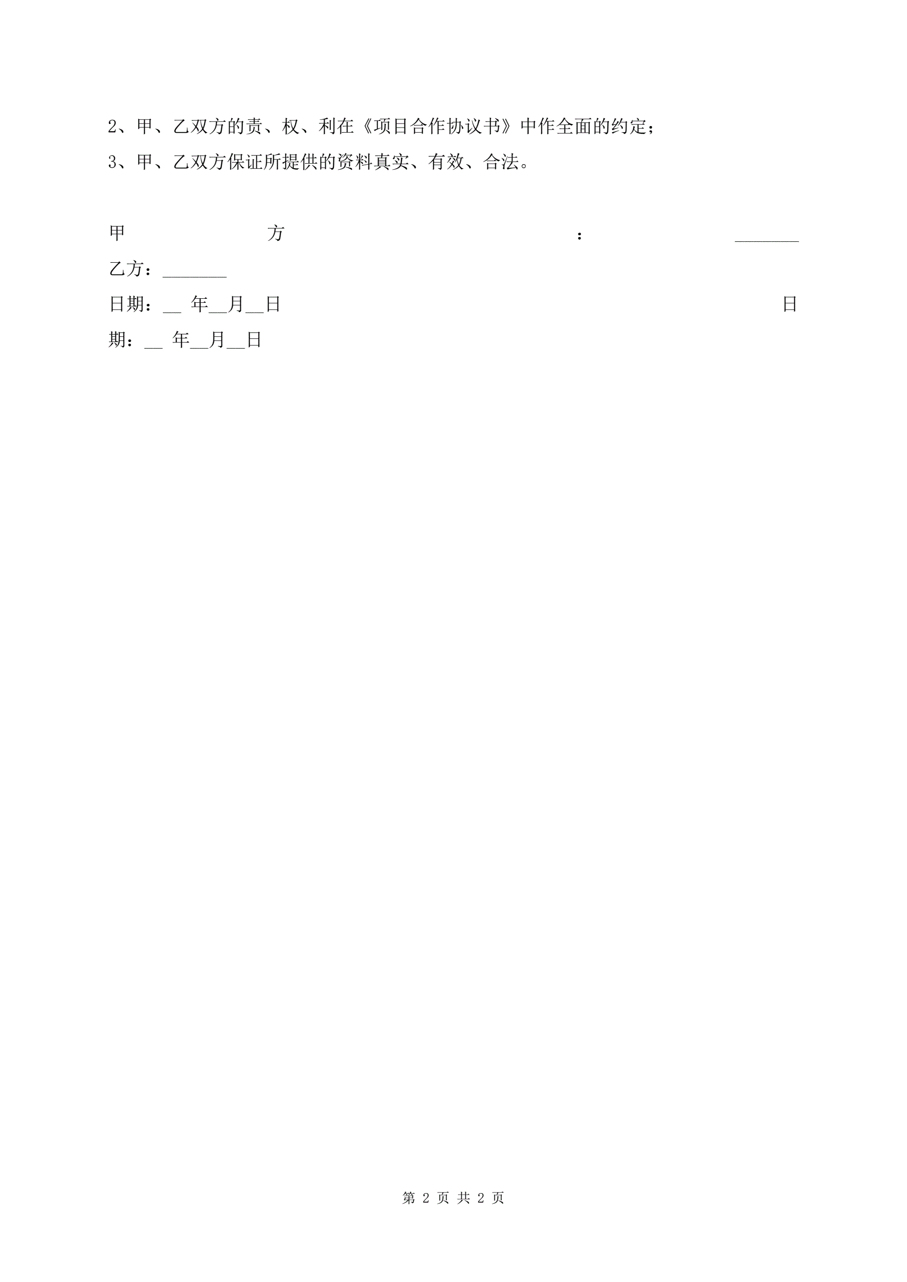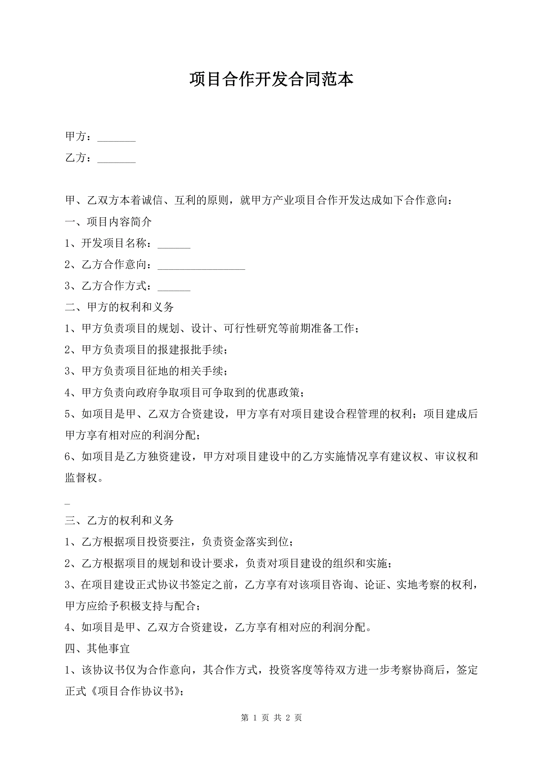 项目合作开发合同范本