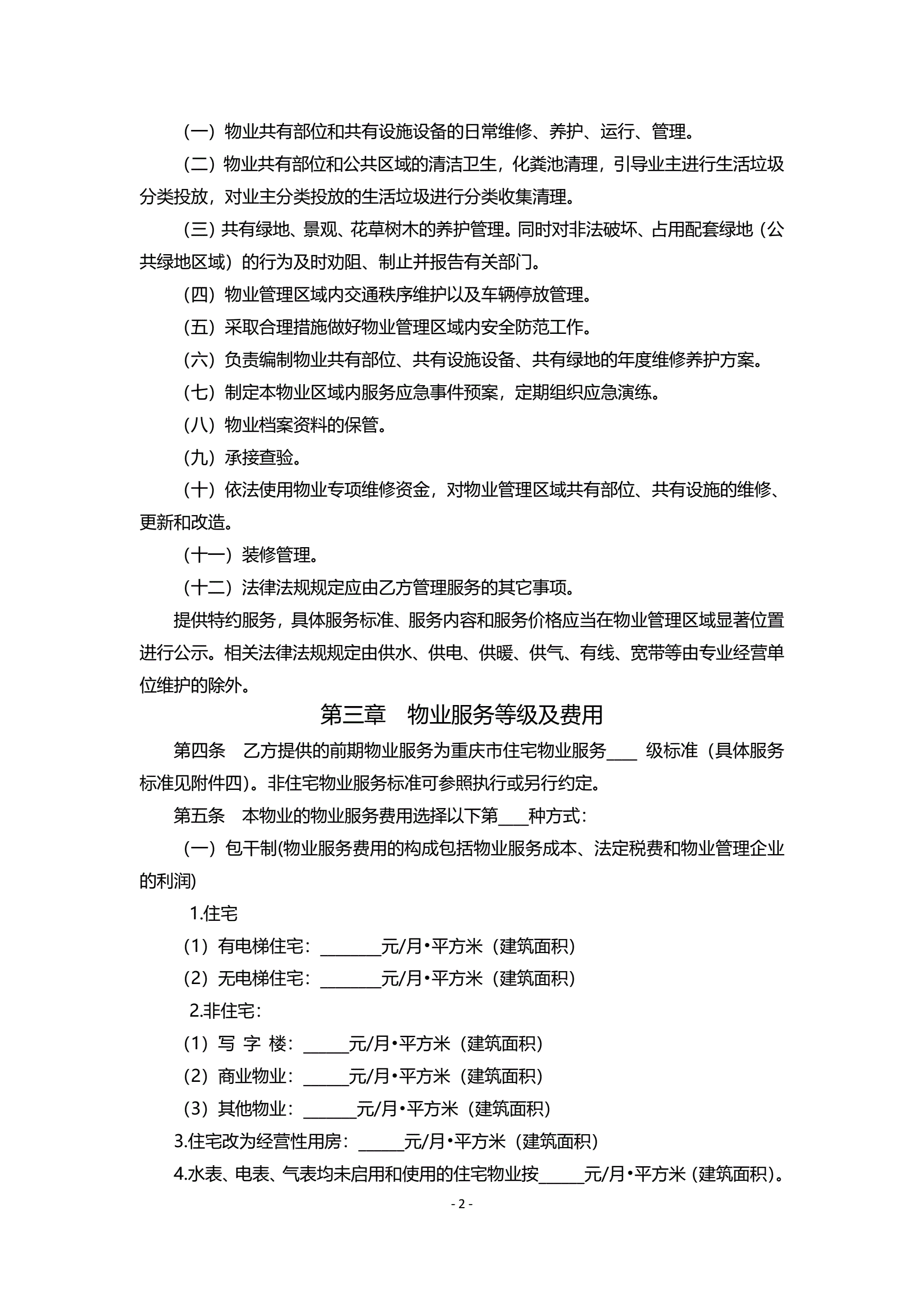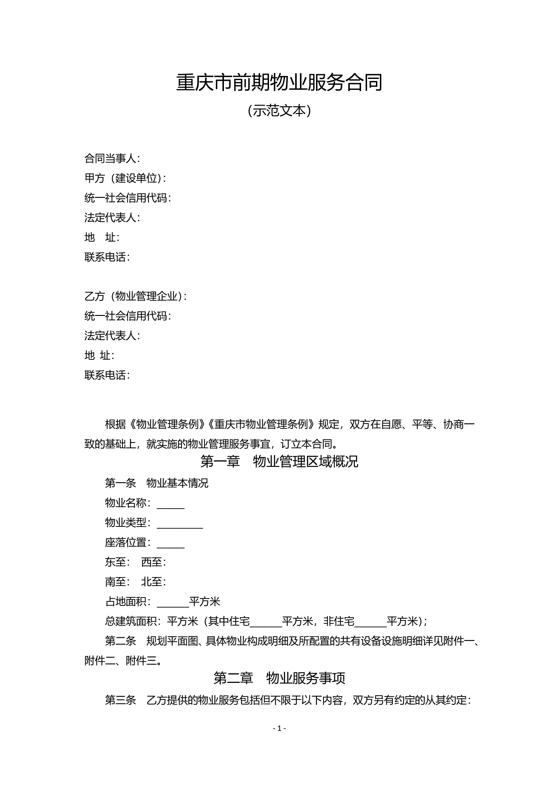 >重庆市前期物业服务合同示范文本(2021版)