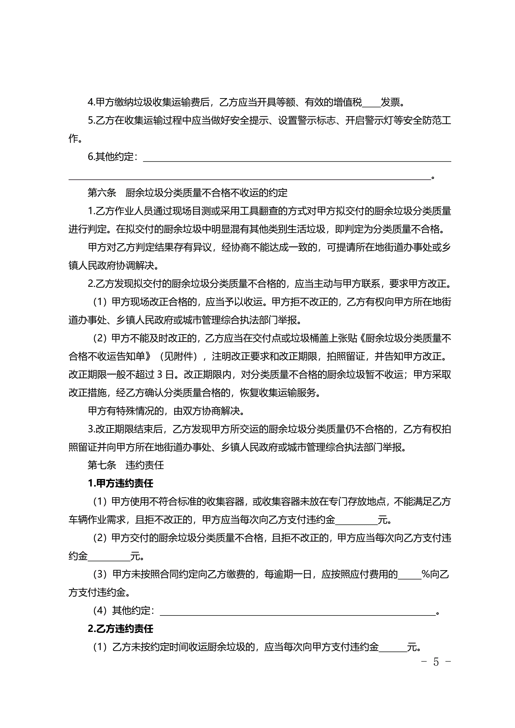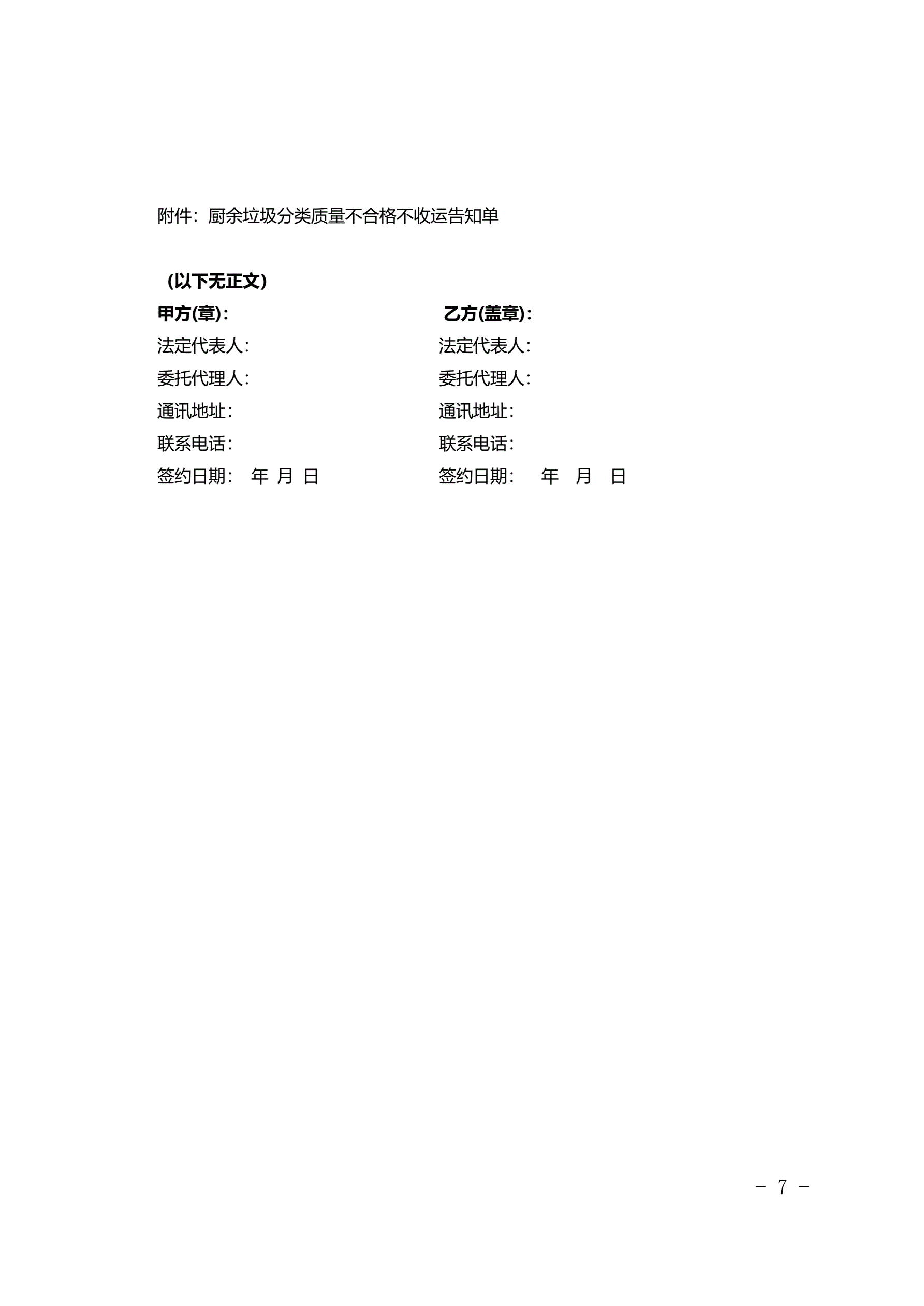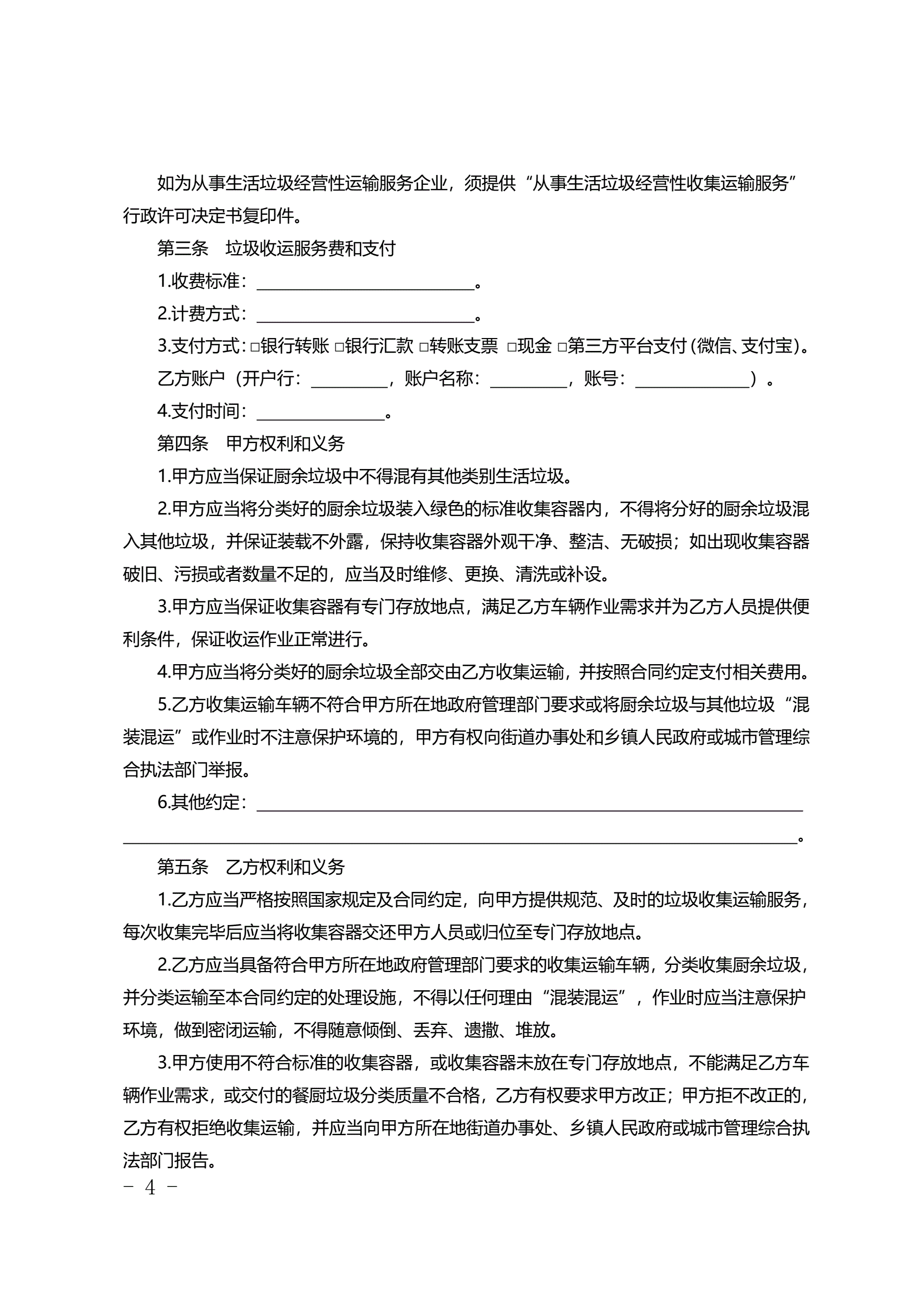 >北京市居住小区厨余垃圾收集运输服务合同