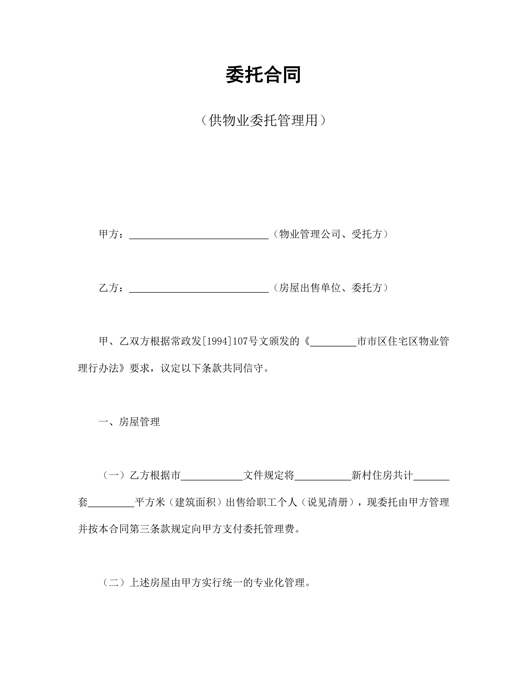 >委托合同(供物业委托管理用)