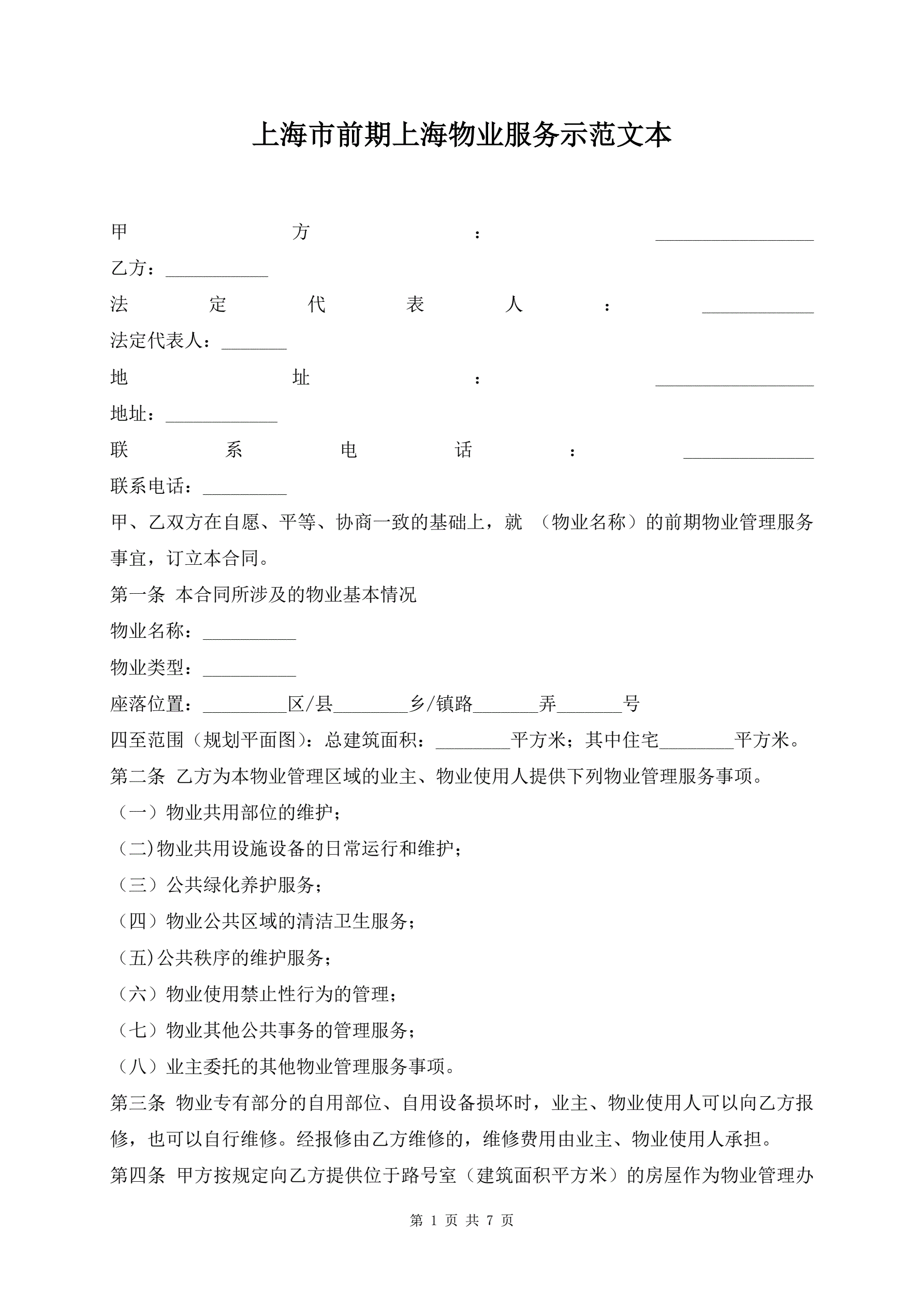 >上海市前期上海物业服务示范文本