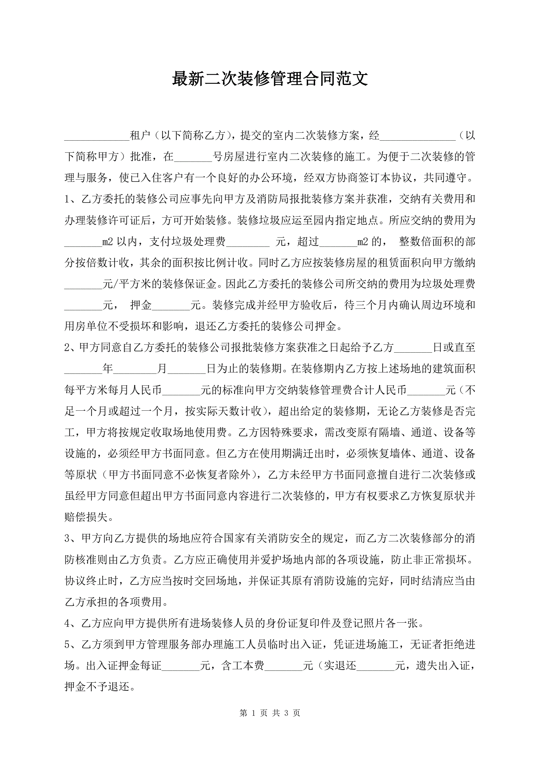 >最新二次装修管理合同范文