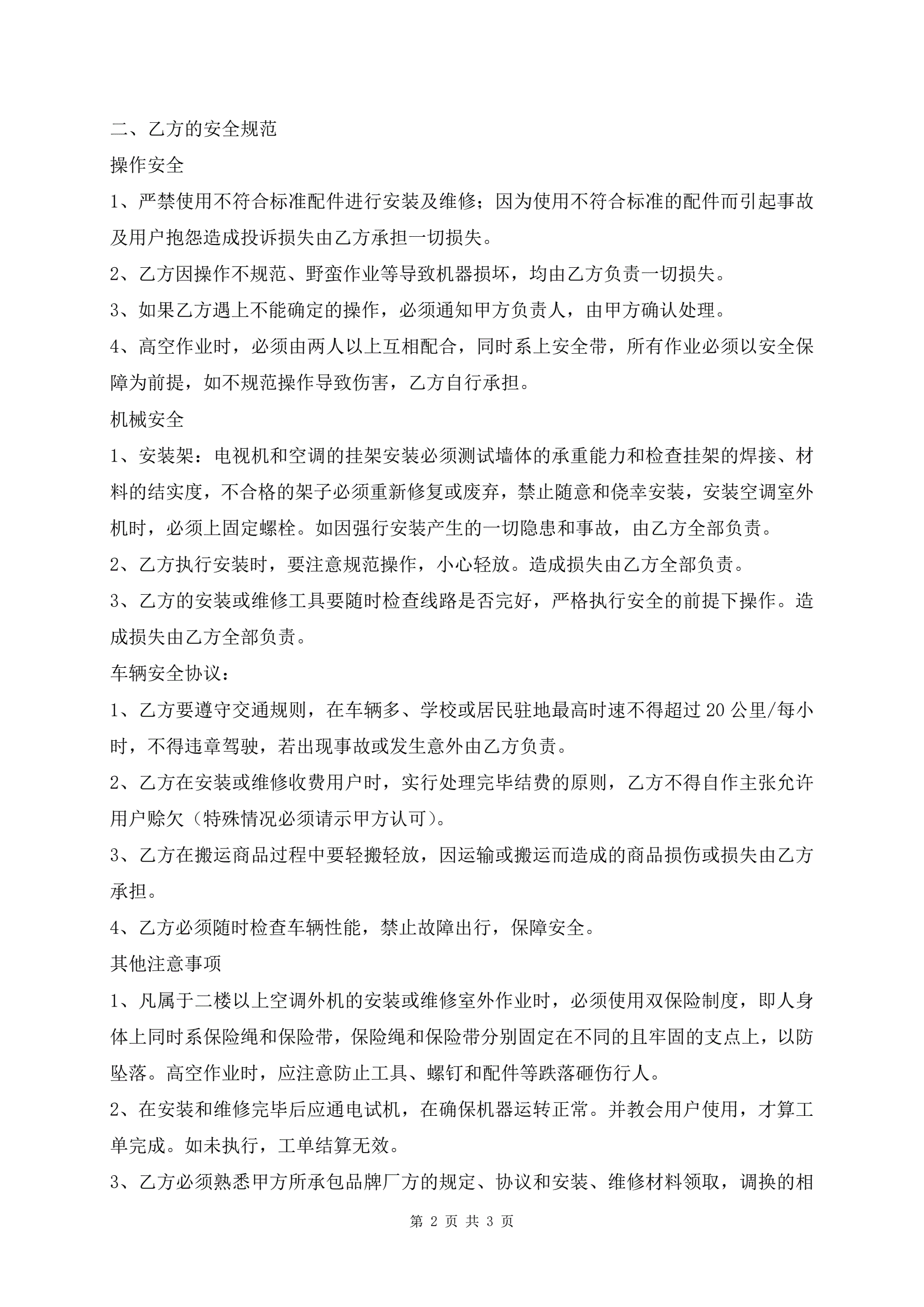 家电安装工作协议合同范本