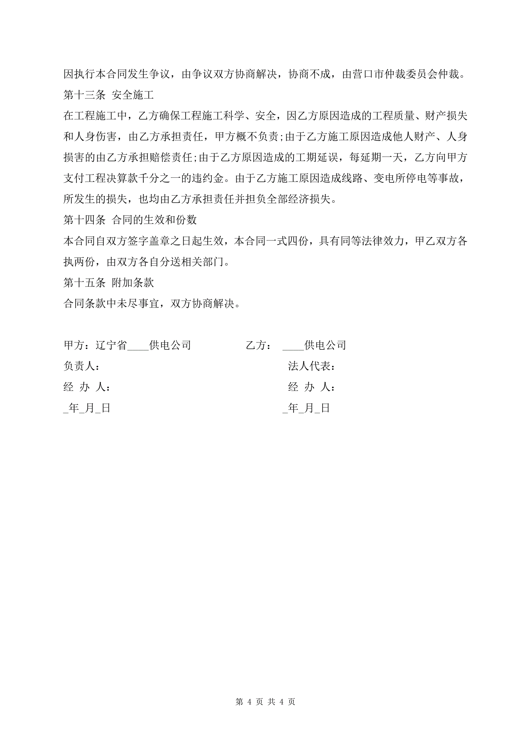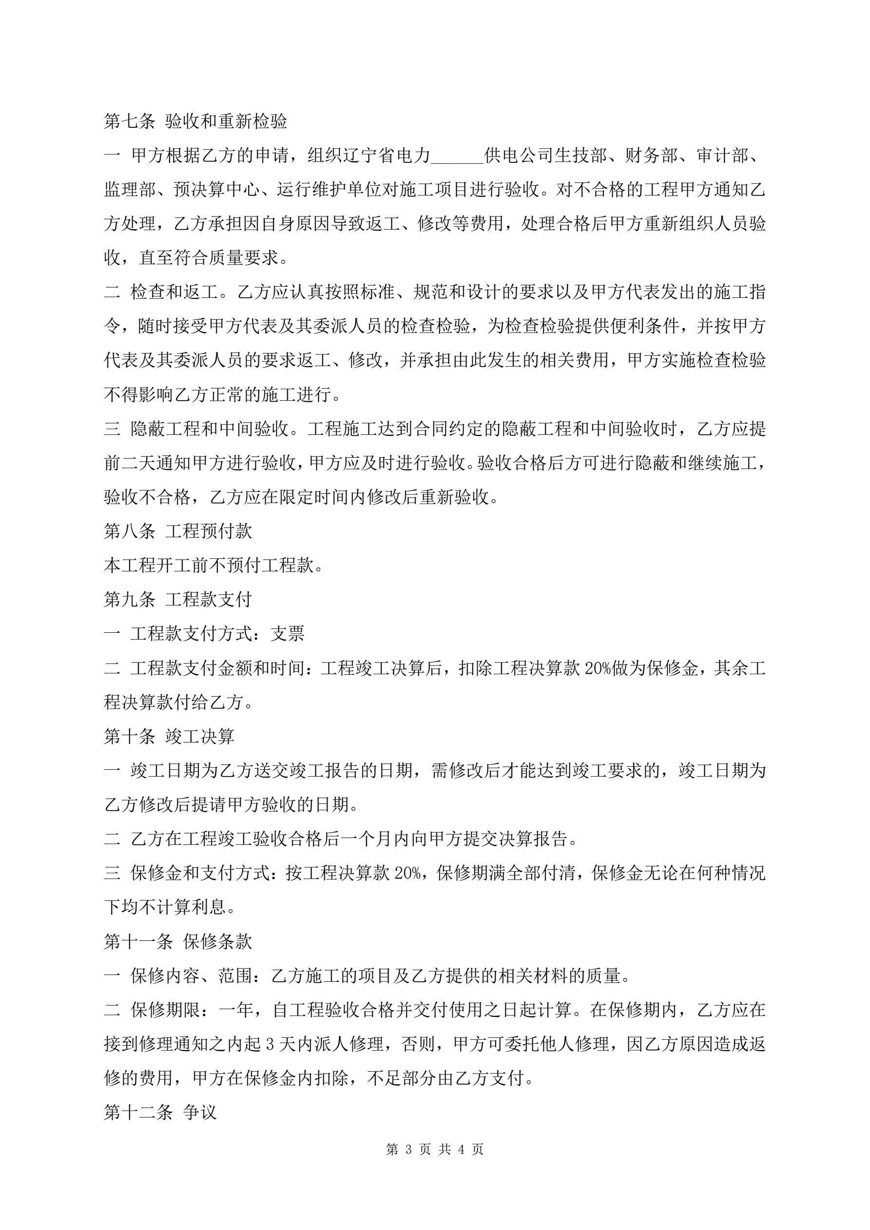 配电工程安装施工合同范本