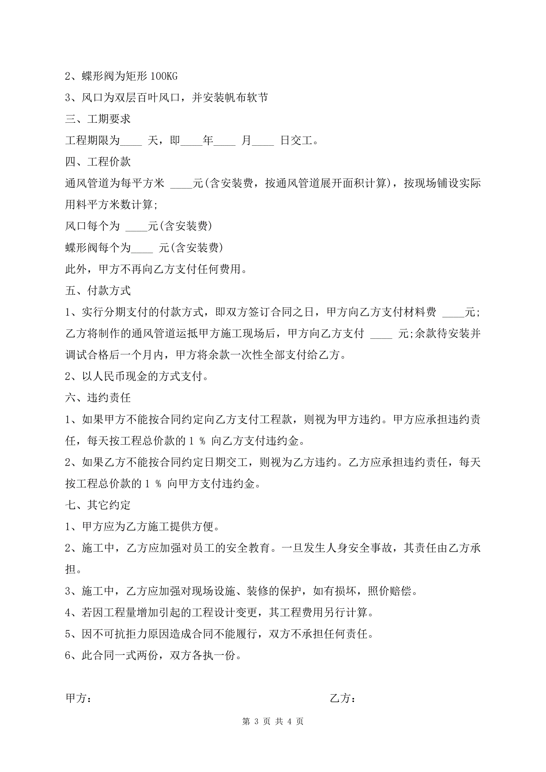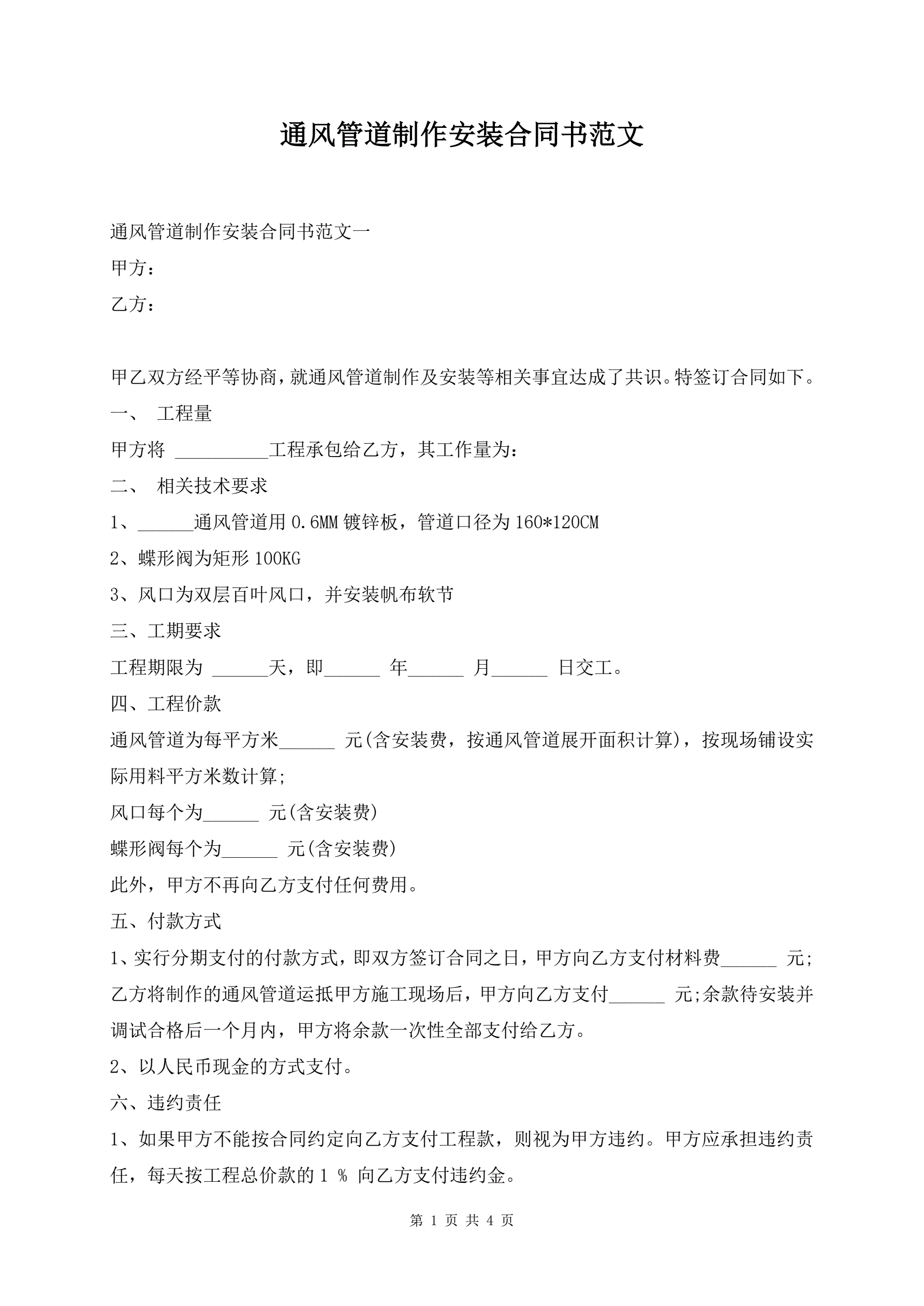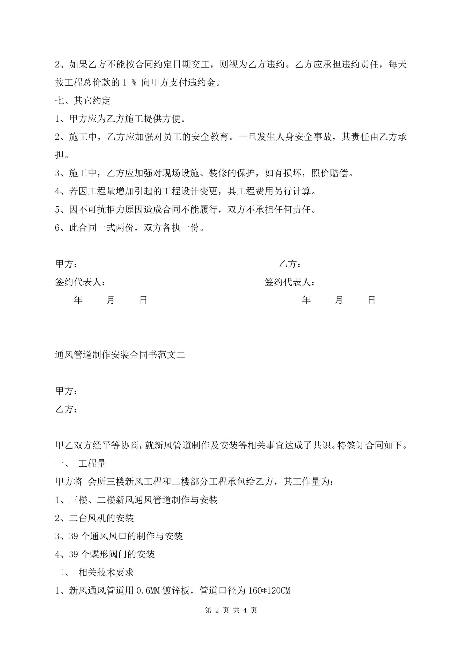 通风管道制作安装合同书范文